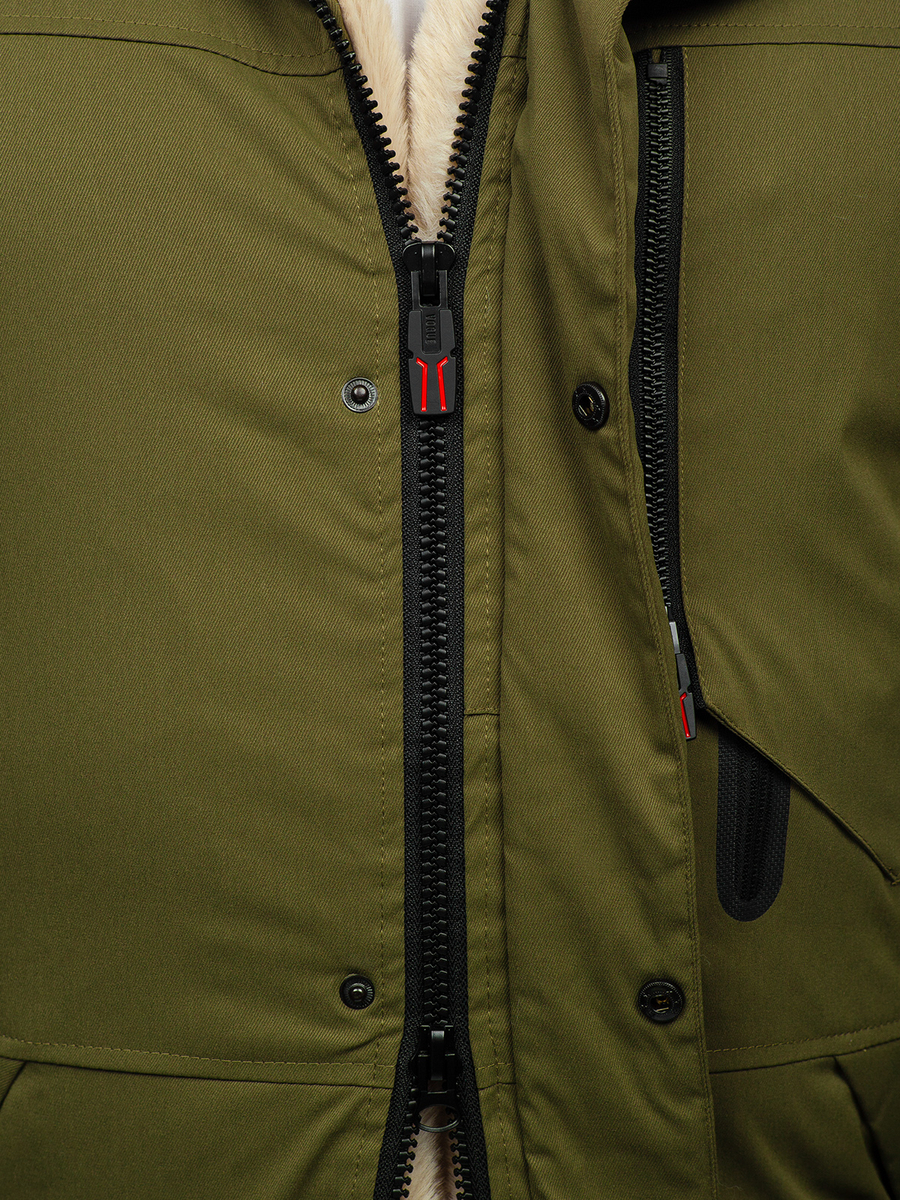 Chaqueta parka de invierno para hombre Bolf 22M38 de color caqui, esta parka de invierno con capucha ajustable, tiene un forro de pelo muy cálido. Con cierre de cremallera y botones automáticos. El producto cuenta con bolsillo en el pecho con cierre de cremallera y bolsillos laterales con cierre de cremallera con los que se puede guardar su móvil, cartera o guantes. Hay otros dos bolsillos dentro, uno de ellos tiene cierre de cremallera. Puños acabados en punto elástico con un ajuste de velcro adicional. Esta chaqueta parka es perfecta para llevar a diario. ¿Te gustaría destacar? ¡Combínala con unos vaqueros y una sudadera con estampado de diseño guay!