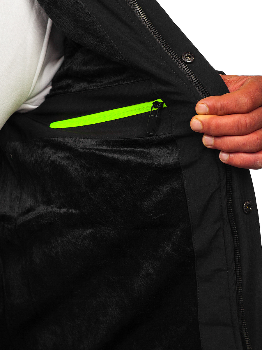 Chaqueta acolchada de invierno para hombre 22M60 de color negro es la opción perfecta para los días de invierno. Esta cálida chaqueta de invierno tiene una capucha extraíble y ajustable con cierre de botones automáticos. Elementos decorativos en las mangas le añaden carácter único. Con cierre de cremallera y botones automáticos.. El producto cuenta con bolsillo en el pecho con cierre de cremallera y bolsillos laterales con cierre de botones automáticos con los que se puede guardar su móvil, cartera o guantes. Además, hay un pequeño bolsillo con cierre de cremallera dentro. Esta chaqueta acolchada es perfecta para llevar a diario.. ¿Te gustaría destacar? ¡Completa la chaqueta acolchada de moda con unos vaqueros y una sudadera con estampado de diseño guay!