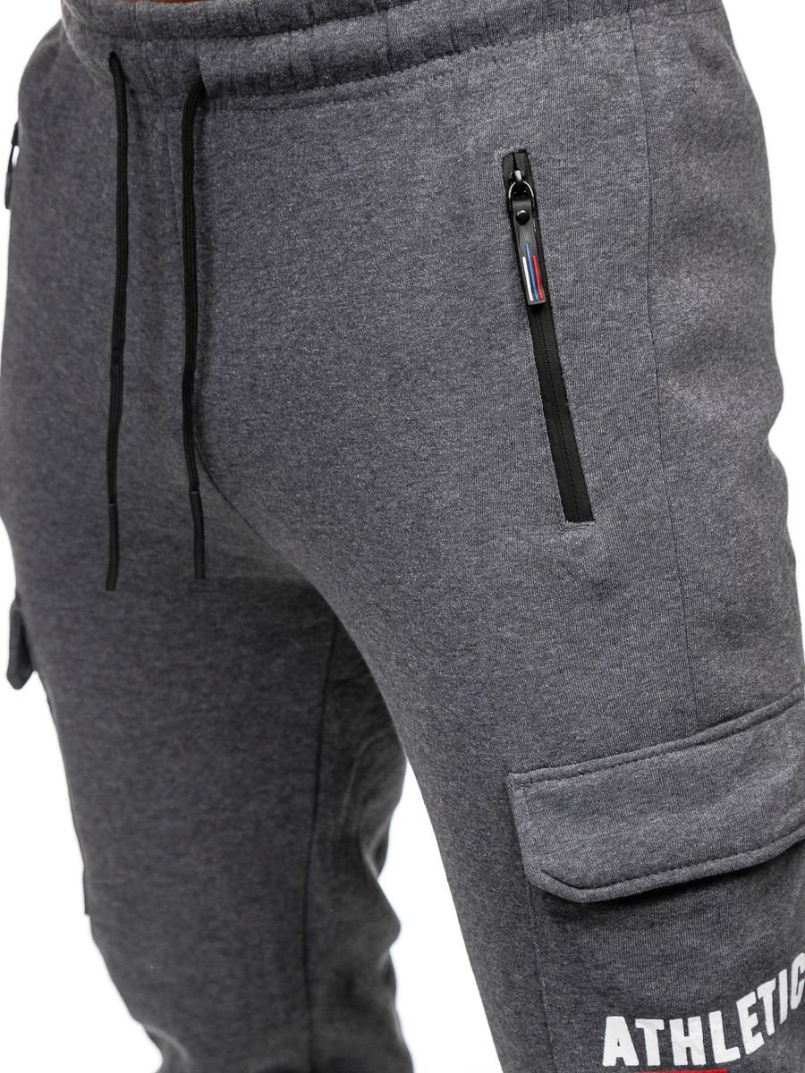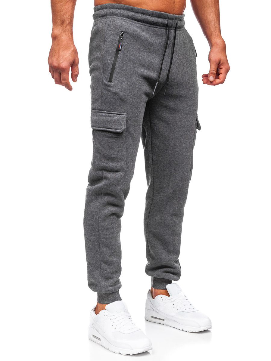 Pantalón combate de chándal jogger para hombre Bolf JX6028 de color antracita, perfecto para los estilos diarios. Este modelo se ajusta perfectamente a la silueta por el ajuste con un elástico fuerte y cordón en la cintura. Cuenta con dos bolsillos exteriores con cierre y laterales con solapa. Perneras están acabadas con un punto elástico, así que no sólo son estéticas, sino que también te protegen del frío y el viento. Estos pantalones jogger de chándal están diseñados como parte de un outfit para encontrarse con los amigos o para entrenar. Se combina genial con una camiseta de manga corta y una sudadera.