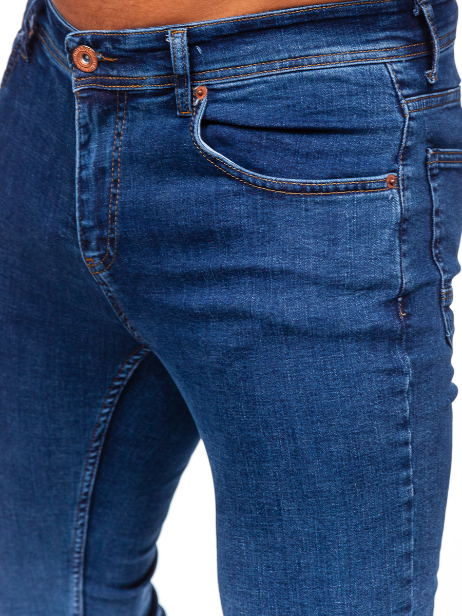 ¡Pantalón vaquero regular fit para hombre Bolf 1122 de color azul oscuro que te permitirá conseguir un look urbano perfecto! Con cierre de cremallera y botón. El pantalón tiene dos bolsillos delanteros y dos traseros. Además, hay un bolsillo pequeño adicional en la parte delantera. Confeccionados de telas de alta calidad, por lo que están increíblemente cómodos y agradables al tacto. Este pantalón de corte regular fit es cómodo y se ajusta perfectamente a todo tipo de silueta. Vaqueros es uno de los estilos de pantalón más populares. Hay que tener en cuenta que son prácticos y siempre quedan bien. ¡Se combina genial con una sudadera y una camiseta de manga corta!