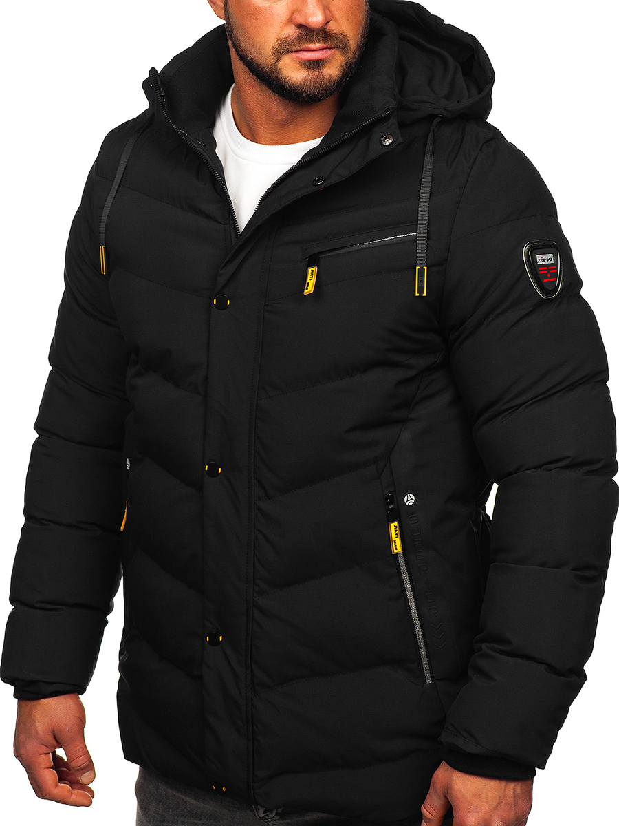 Chaqueta acolchada de invierno para hombre Bolf 22M59 de color negro, es perfecta para los días más frescos ya que está forrada por dentro y, al mismo tiempo, está de moda. Cuenta con un cierre de cremallera y botones automáticos, una capucha extraíble y ajustable y un cuello alto. El producto tiene bolsillos exteriores, bolsillo con cierre de cremallera en el pecho y un bolsillo interno con los que se puede guardar sus cosas esenciales. Esta chaqueta se ajusta perfectamente, ya que sus puños están acabados con un punto elástico por dentro. Una aplicación decorativa en la manga y un inscripción dentro del cuello le añade carácter. Se combina genial con unis vaqueros y una sudadera!