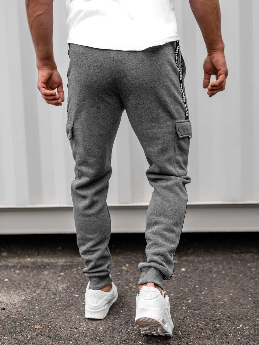 Pantalón cargo de chándal para hombre Bolf JX8715B de color gris es un producto que gustará a todo fan del estilo deportivo. Este elegante pantalones cargo es un corte que ha triunfado desde hace décadas dentro de la moda para hombres. Pantalón ajustable con un elástico fuerte y cordón en la cintura. De este modo, se pueden adaptar a toda la silueta del hombre. El cordón está acabado con elementos blancos que contrastan perfectamente con el color del pantalón. Cuenta con dos bolsillos prácticos. Se pueden guardar allí los documentos, las llaves o el teléfono. Hay otros dos bolsillos laterales. Con solapa que tiene una inscripción especial. Hay una inscripción blanca situada en la longitud del pantalón que destaca el color del mismo. Bajo es acabado en punto elástico de moda. De esta manera, el pantalón se ajusta en la pierna y garantiza el calor en los días frescos.
