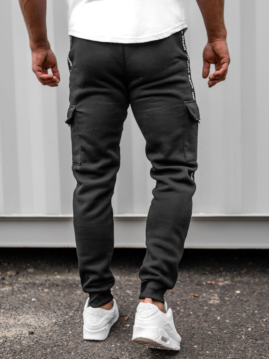 Pantalón cargo de chándal para hombre Bolf JX8715B de color negro es un producto que gustará a todo fan del estilo deportivo. Este elegante pantalones cargo es un corte que ha triunfado desde hace décadas dentro de la moda para hombres. Pantalón ajustable con un elástico fuerte y cordón en la cintura. De este modo, se pueden adaptar a toda la silueta del hombre. El cordón está acabado con elementos blancos que contrastan perfectamente con el color del pantalón. Cuenta con dos bolsillos prácticos. Se pueden guardar allí los documentos, las llaves o el teléfono. Hay otros dos bolsillos laterales. Con solapa que tiene una inscripción especial. Hay una inscripción blanca situada en la longitud del pantalón que destaca el color del mismo. Bajo es acabado en punto elástico de moda. De esta manera, el pantalón se ajusta en la pierna y garantiza el calor en los días frescos.