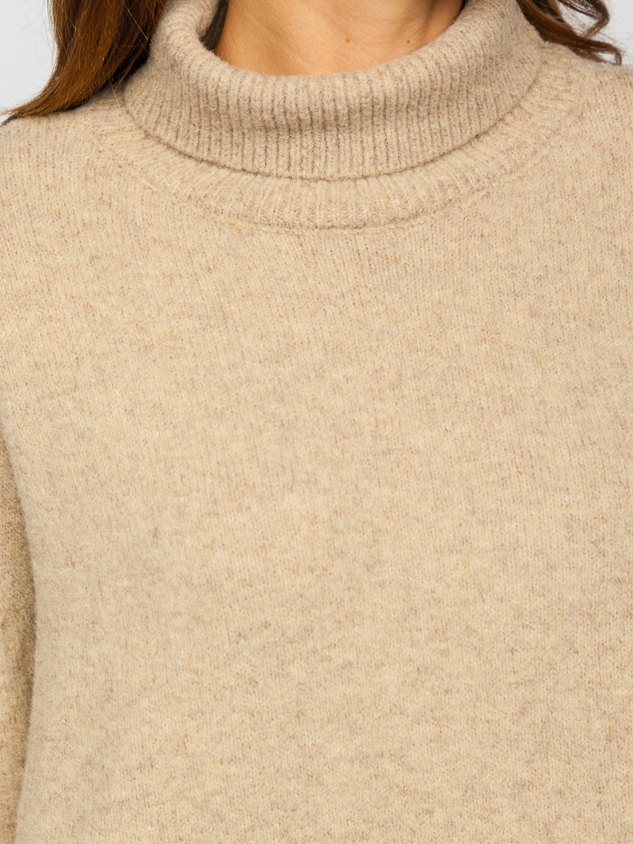 Opiniones de usuarios de Jersey largo de cuello alto oversize para mujer beige Bolf J51882