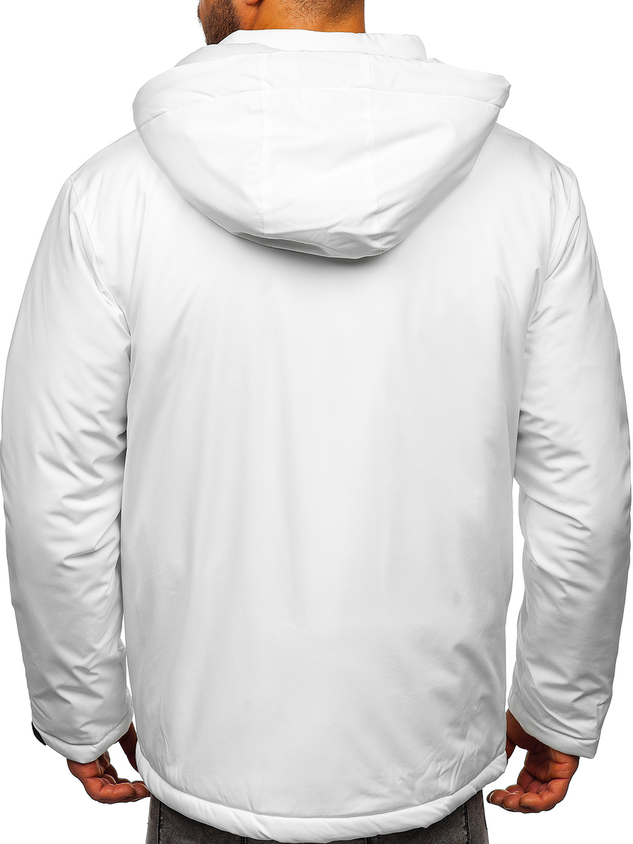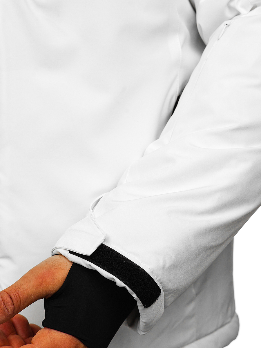 Chaqueta deportiva de invierno para hombre Bolf HH011 de color blanco es una estupenda propuesta para los meses más frescos. Esta chaqueta de invierno con capucha es del gusto de todos los hombres. Con cierre de cremallera. Su capucha es extraíble y tiene un ajuste 2D. El cuello alto, con cierre de cremallera, le protegerá perfectamente del frío. Cuenta con dos bolsillos laterales con cierre, un bolsillos con cierre de cremallera en el pecho y dos bolsillos internos:una con cierre de velcro. Puños están ajustables con velcro y acabados en punto elástico por dentro, con una abertura para el pulgar. El producto es versátil y es perfecto para un entrenamiento, un paseo, una salida por la ciudad o un viaje por la montaña. Confeccionado en 94% de poliéster y 6% de elstano. Se combina genial con unos vaqueros o unos pantalones de chándal.