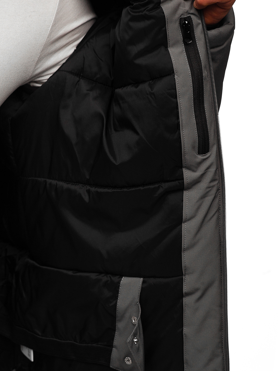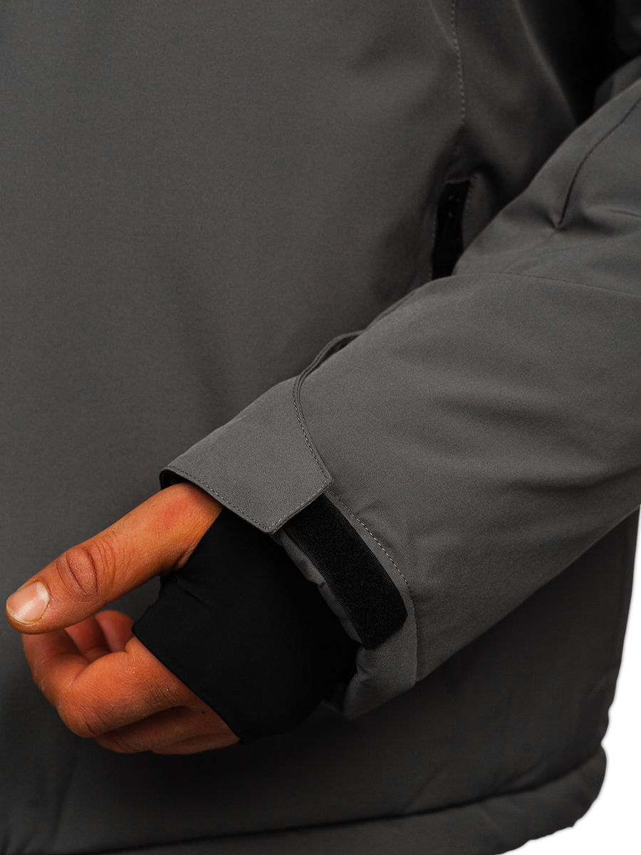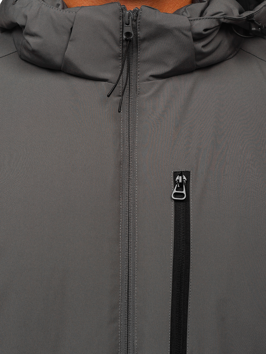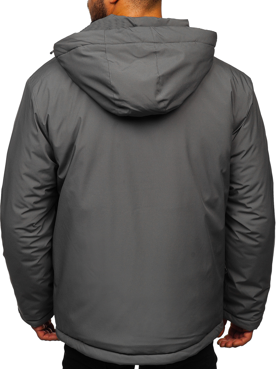 Chaqueta deportiva de invierno para hombre Bolf HH011 de color grafito es una estupenda propuesta para los meses más frescos. Esta chaqueta de invierno con capucha es del gusto de todos los hombres. Con cierre de cremallera. Su capucha es extraíble y tiene un ajuste 2D. El cuello alto, con cierre de cremallera, le protegerá perfectamente del frío. Cuenta con dos bolsillos laterales con cierre, un bolsillos con cierre de cremallera en el pecho y dos bolsillos internos:una con cierre de velcro. Puños están ajustables con velcro y acabados en punto elástico por dentro, con una abertura para el pulgar. El producto es versátil y es perfecto para un entrenamiento, un paseo, una salida por la ciudad o un viaje por la montaña. Confeccionado en 94% de poliéster y 6% de elstano. Se combina genial con unos vaqueros o unos pantalones de chándal.