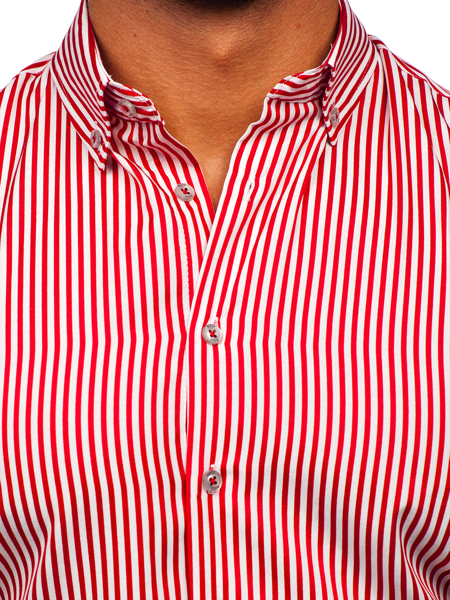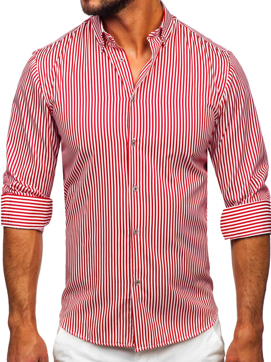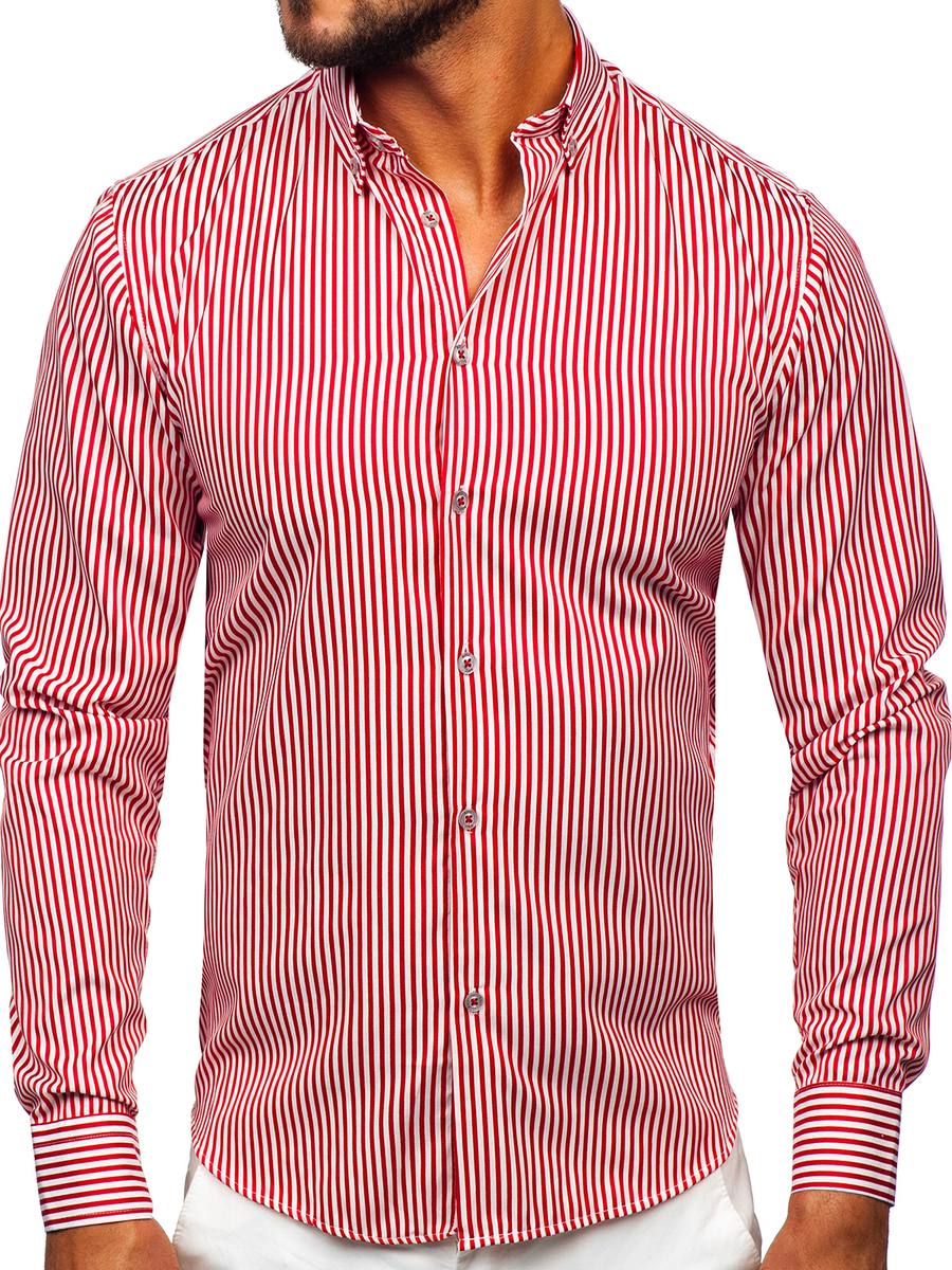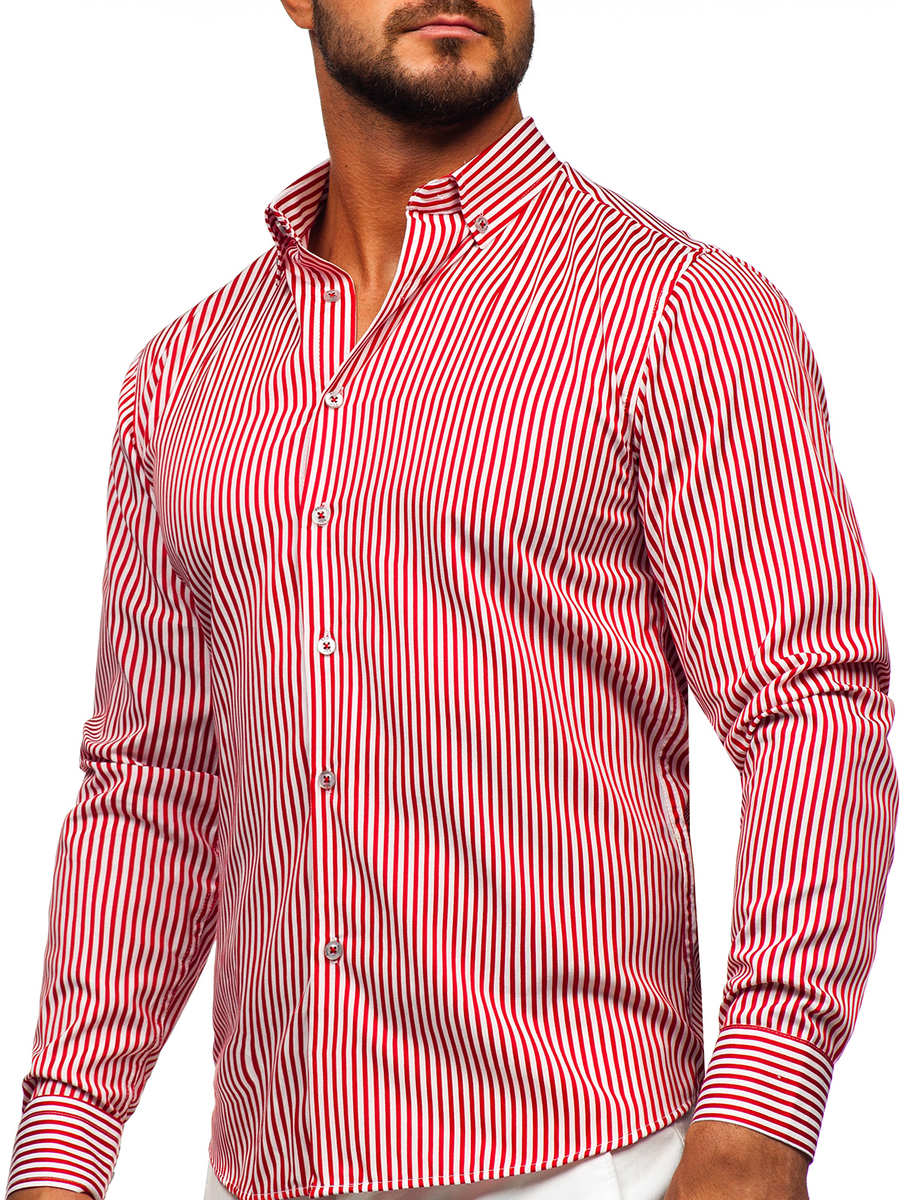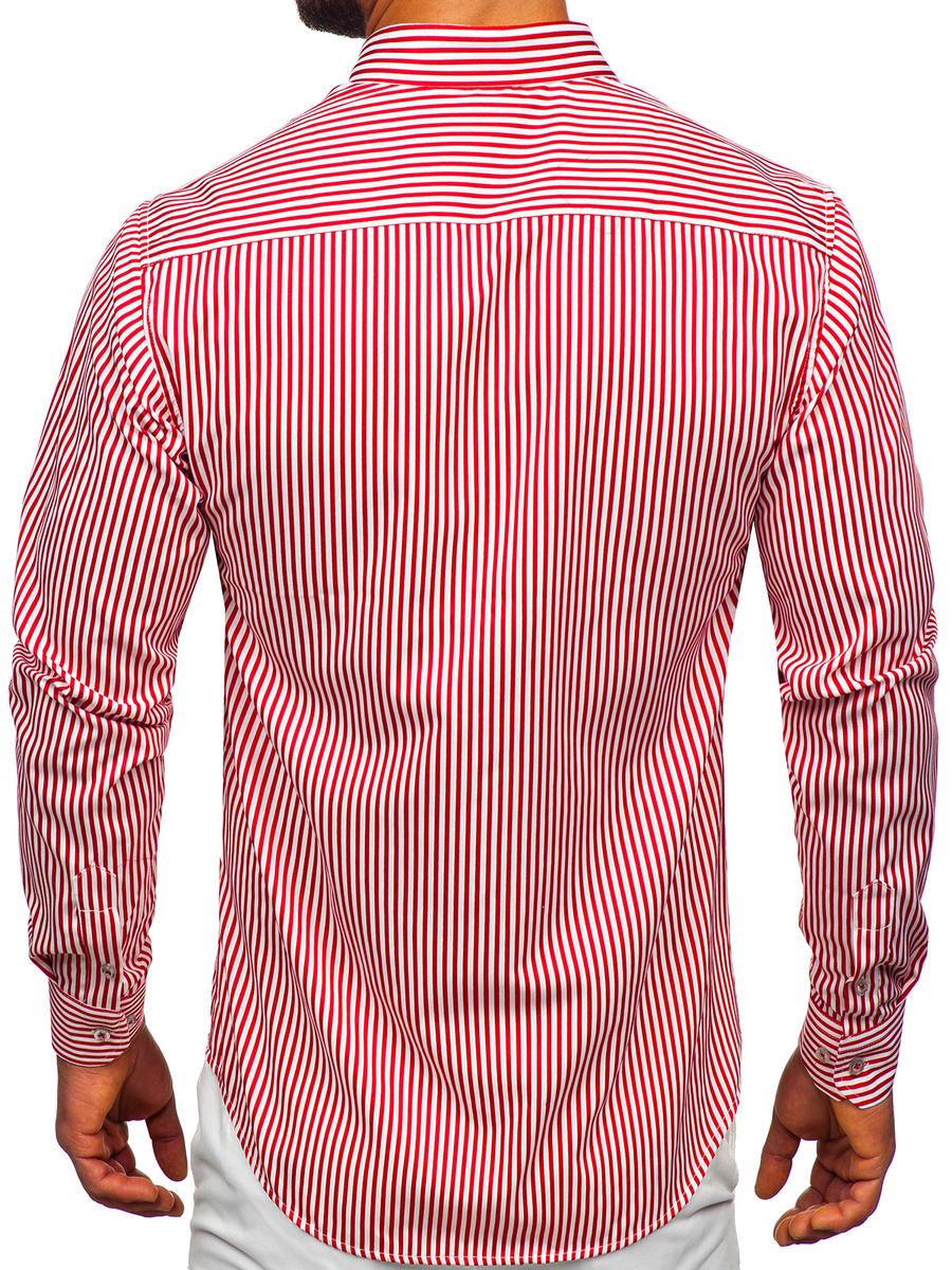 Opiniones de usuarios de Camisa de rayas de manga larga para hombre rojo Bolf 22731