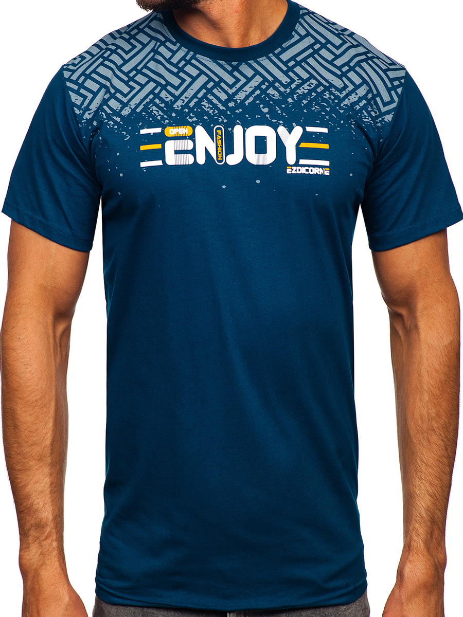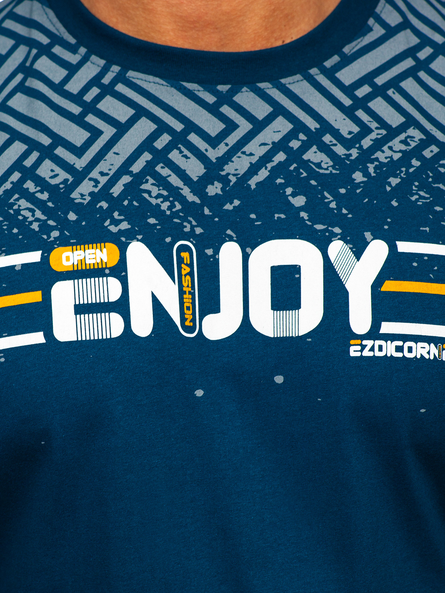 Opiniones de usuarios de Camiseta algodón de manga corta con impresión para hombre azul oscuro Bolf 14720