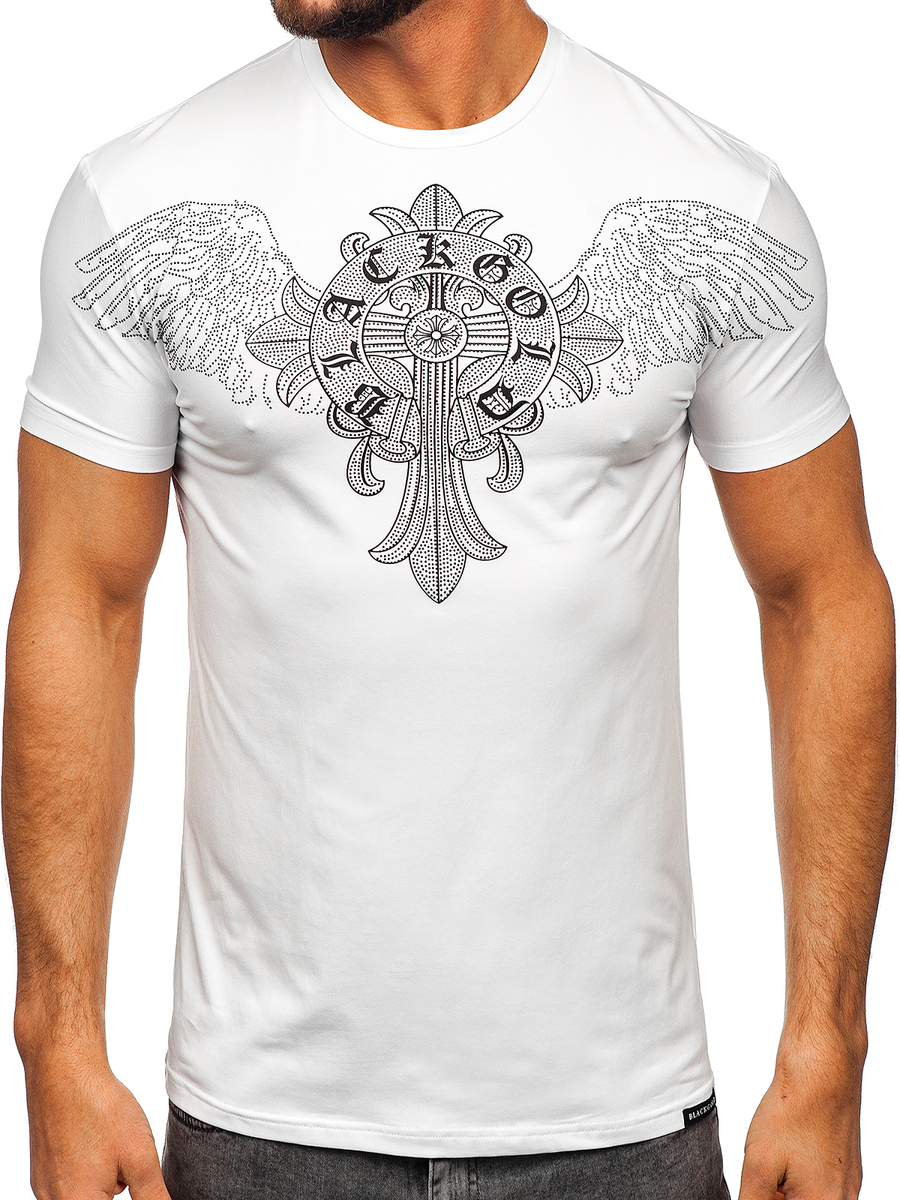 Opiniones de usuarios de Camiseta de manga corta con impresión con lentejuelas para hombre blanco Bolf MT3037