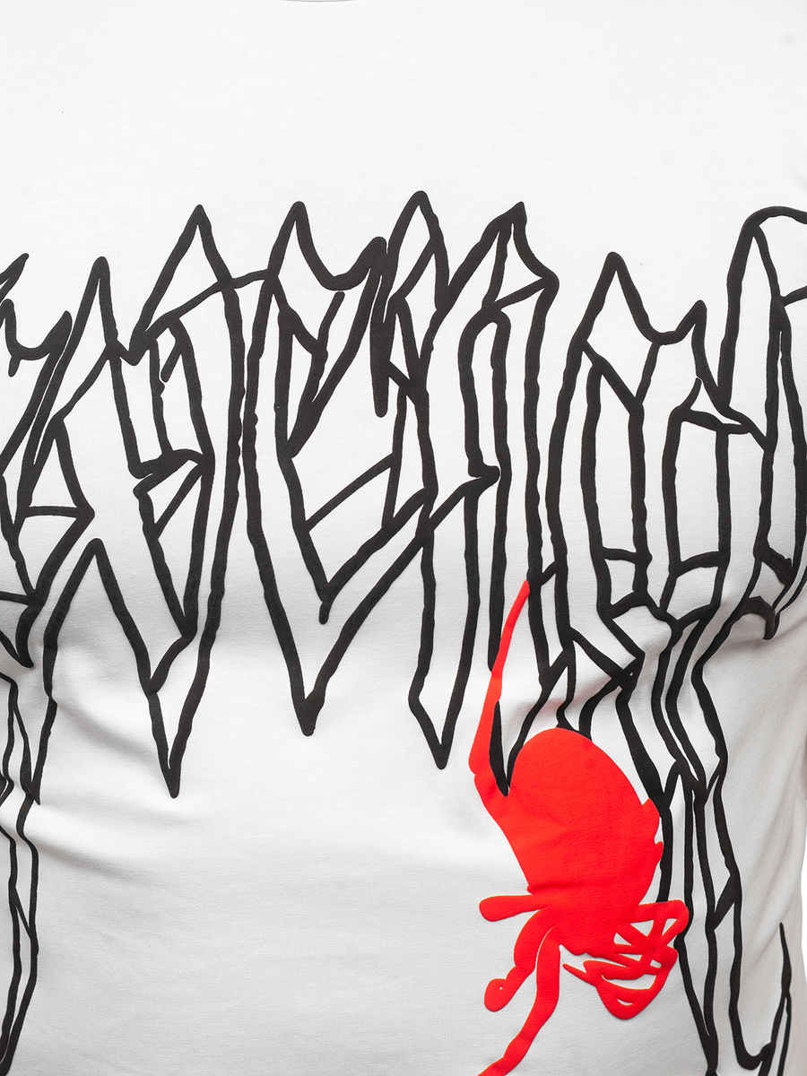 Camiseta de manga corta con impresión para hombre Bolf MT3026 de color blanco, una prenda perfecta para los fans de los diseños inusuales y únicos. Se combina genial con una sudadera y unos pantalones de chándal. Perfecta para llevar a diario o el entrenamiento. Confeccionada con un 95% de algodón y un 5% de elastano, garantiza una excelente flexibilidad y durabilidad de la tela. Su escote redondo y corte slim fit realzan bien la silueta. Disponible en blanco y negro.