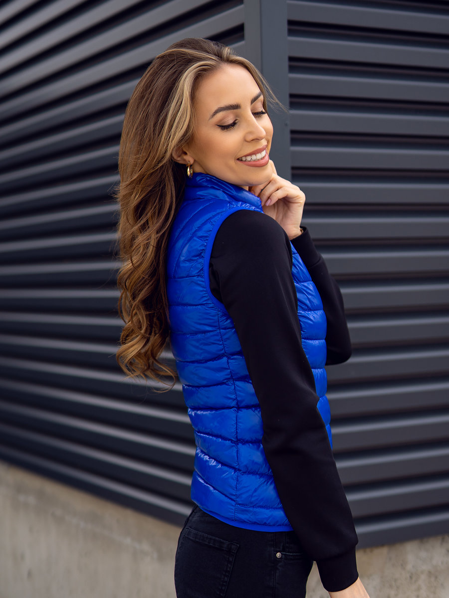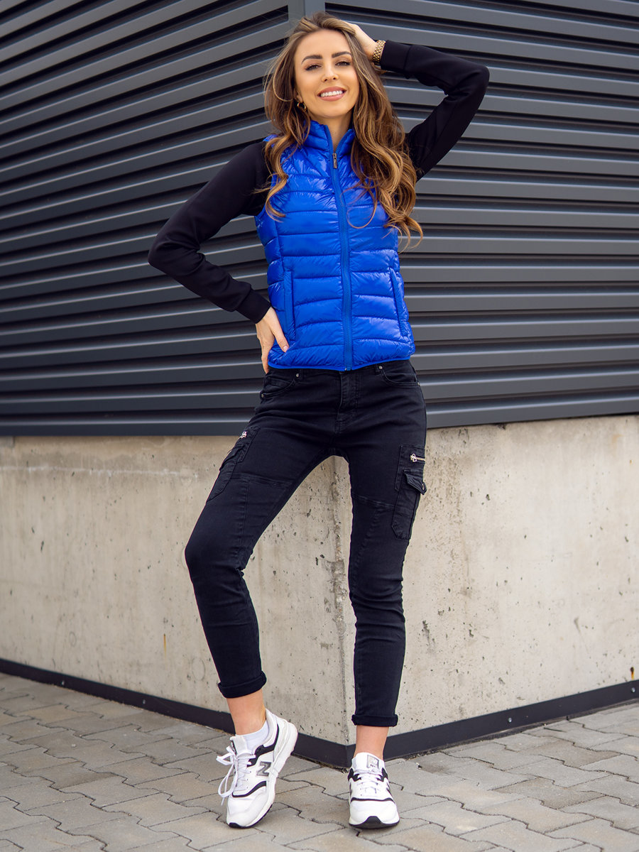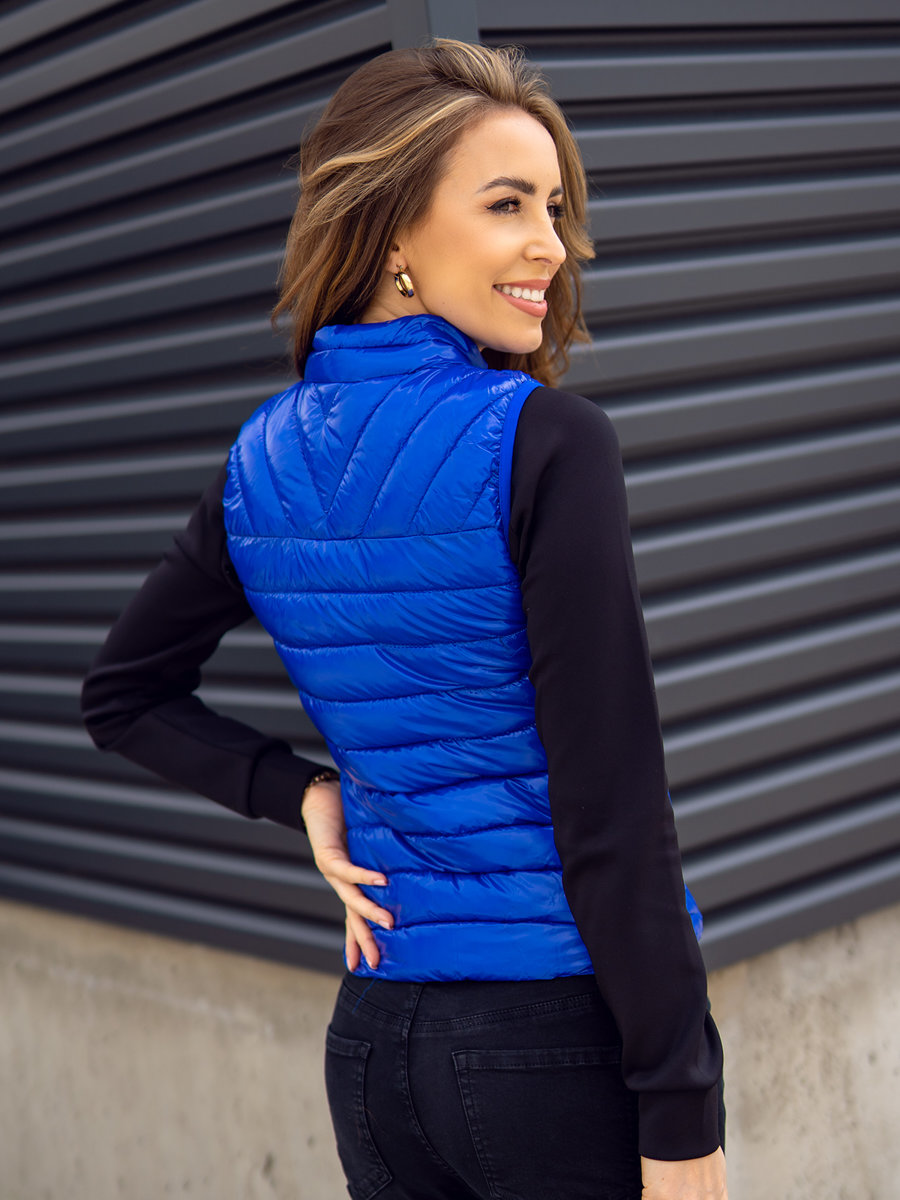 Chaleco acolchado para mujer Bolf R0107AA de color azul es perfecto para crear looks tanto deportivos como urbanos. Los acholchados en la totalidad le añaden un carácter deportivo. Se cierra con cremallera y cuenta con un cuello elevado. Cuenta con dos bolsillos exteriores con cierre que le añaden carácter práctico.Confeccionado en 100% de nylon, por lo que es muy cómodo. Este chaleco de corte clásico es la perfecta alternativa a una chaqueta en la temporada de otoño y primavera. Se puede sustituir una chaqueta de entretiempo e incluso una sudadera con éxito, ya que protege del frío y del viento. Puede ser una base para crear varios estilos de moda. Se combina genial con pantalones de chándal y así crear un outfit deportivo y holgado. Queda igualmente perfecto con unos vaqueros y una camiseta de manga corta.
