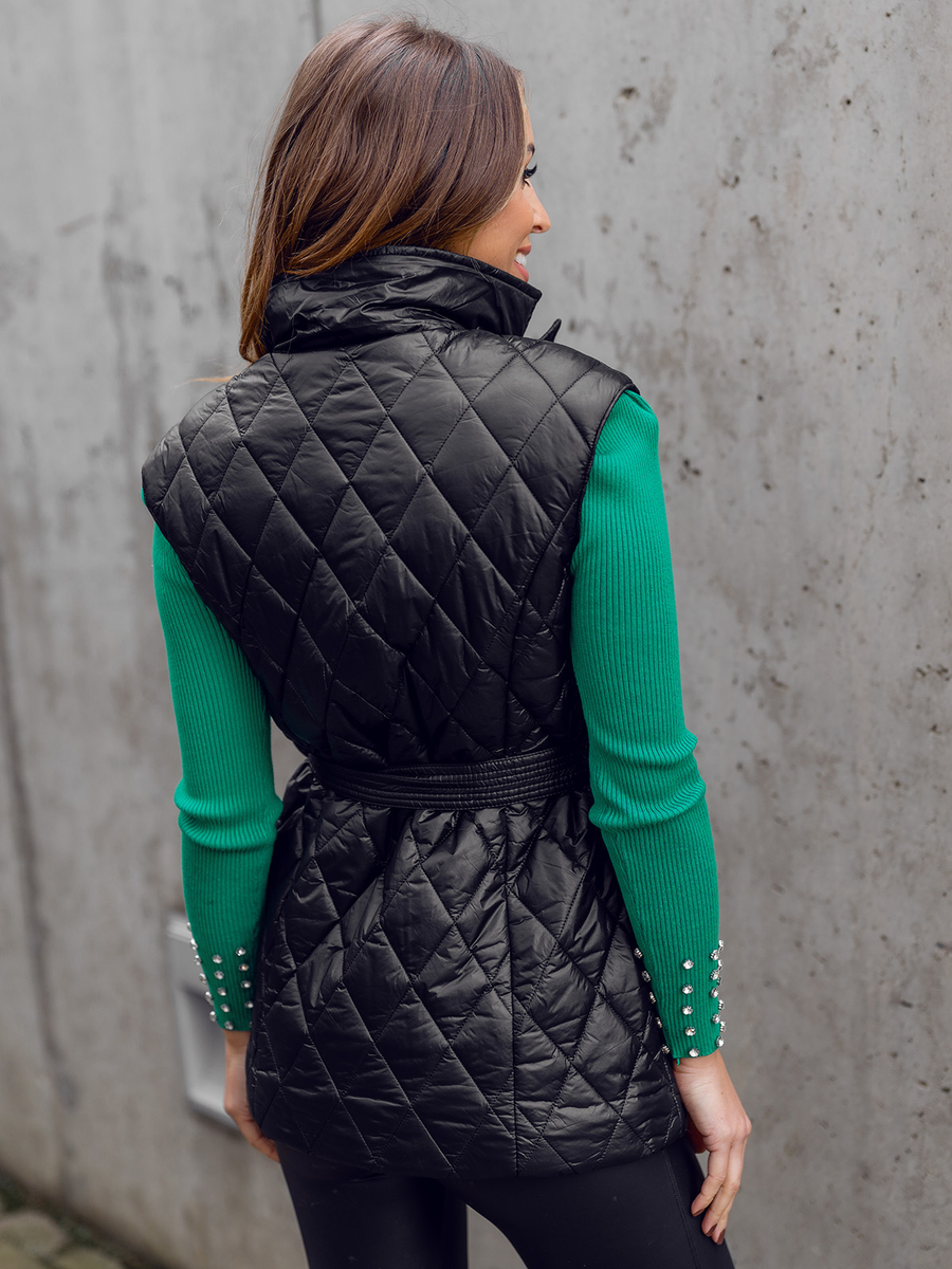 Chaleco acolchado y largo para mujer Bolf JIN221A de color negro es una propuesta de moda para la temporada de entretiempo. Tiene un cierre de botones automáticos, cuello y cinturón. Dos bolsillos exteriores le añaden carácter práctico. Confeccionado en 100% de nylon, por lo que es muy cómodo. Se puede sustituir una chaqueta de entretiempo e incluso una sudadera con éxito, ya que protege del frío y del viento. Puede ser una base para crear varios estilos de moda. Se combina genial con pantalones de chándal y así crear un outfit deportivo y holgado.
