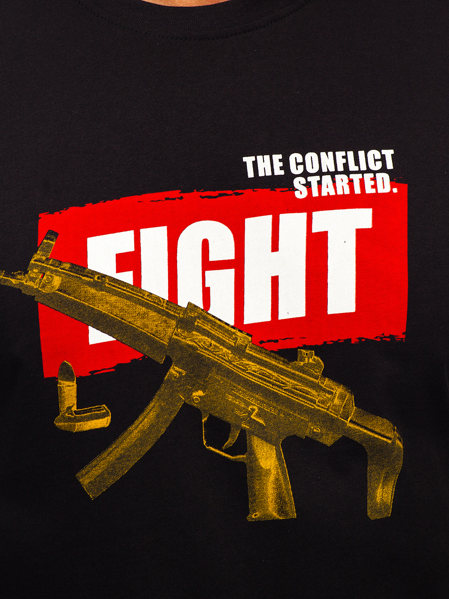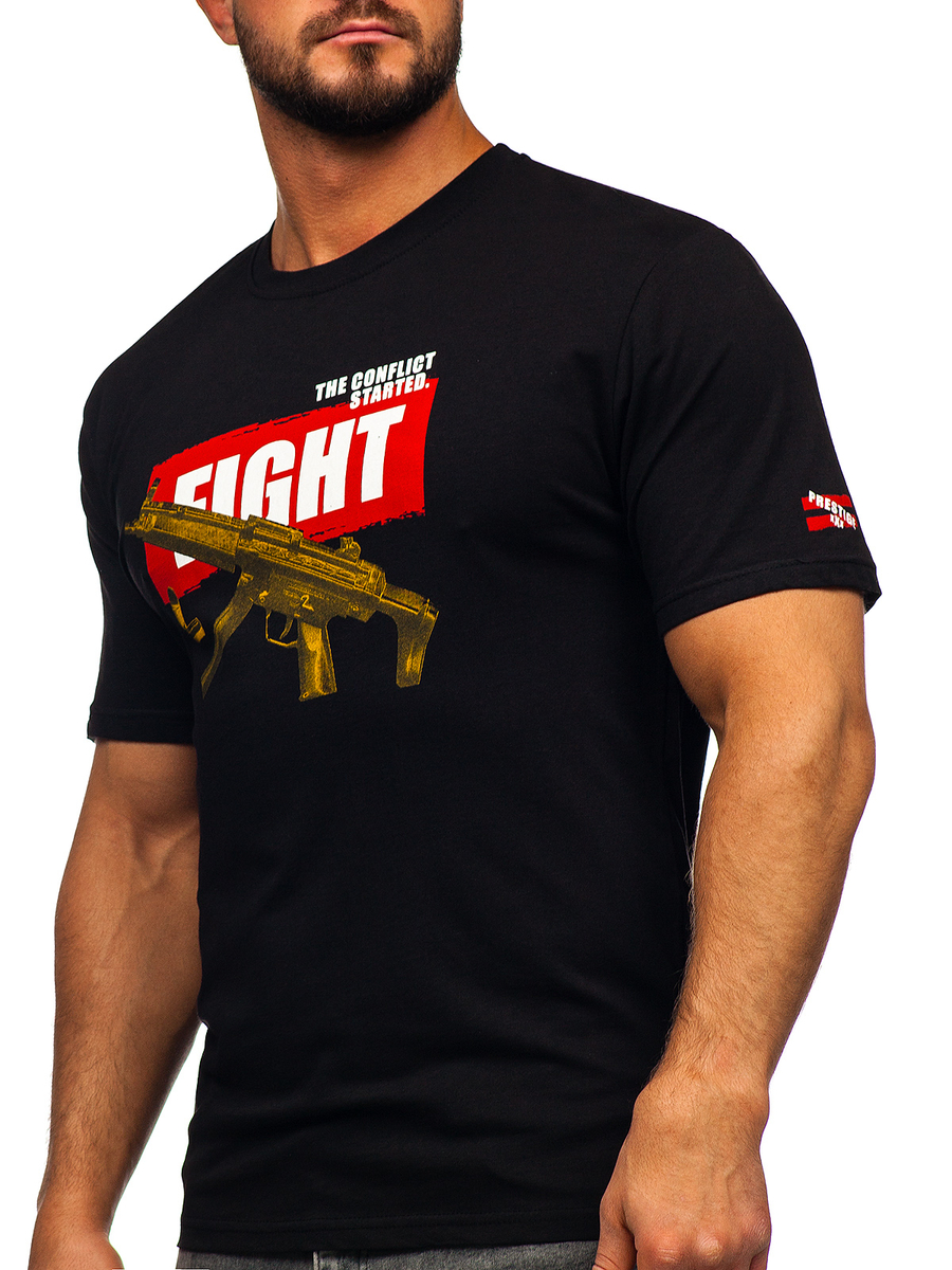 Opiniones de usuarios de Camiseta algodón de manga corta con impresión para hombre negro Bolf 14709