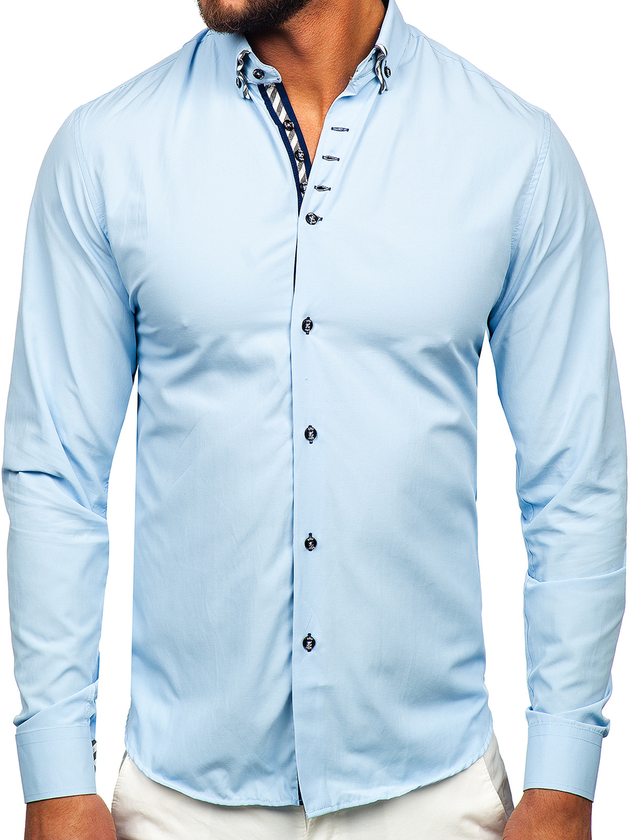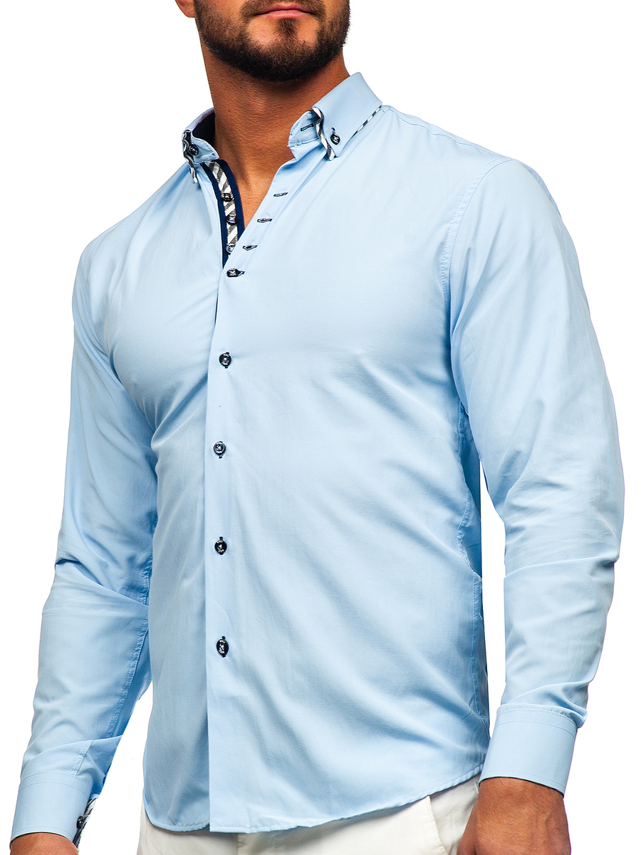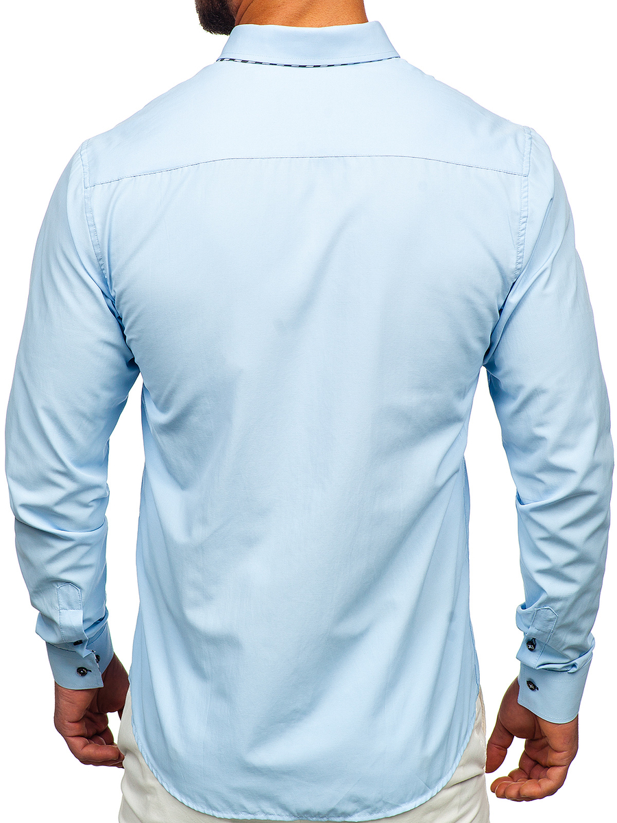 Camisa de manga larga Bolfslim fit excepcional de color azul claro. Acentúa los estilos, queda genial combinada con vaqueros o pantalón chino beige. Esta camisa azul claro de hombre tiene cuello original y cierre decorativo. Puedes llevarla también bajo la americana.
