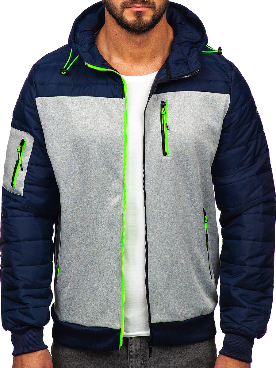 Chaqueta para hombre Bolf 8M902 de color azul oscuro, una opción excelente para los días más frescos. Cuenta con cierre de cremallera y amplios bolsillos exteriores. Su capucha ajustable y su cuello alto te protegen de la helada y el viento en las noches más frías. Se puede llevarla en diversas ocasiones. Con unos vaqueros y unas zapatos deportivas, crearás un look para todos los días. Además, es una prenda perfecta para practicar deporte o encontrarse con los amigos. Disponible en dos colores.