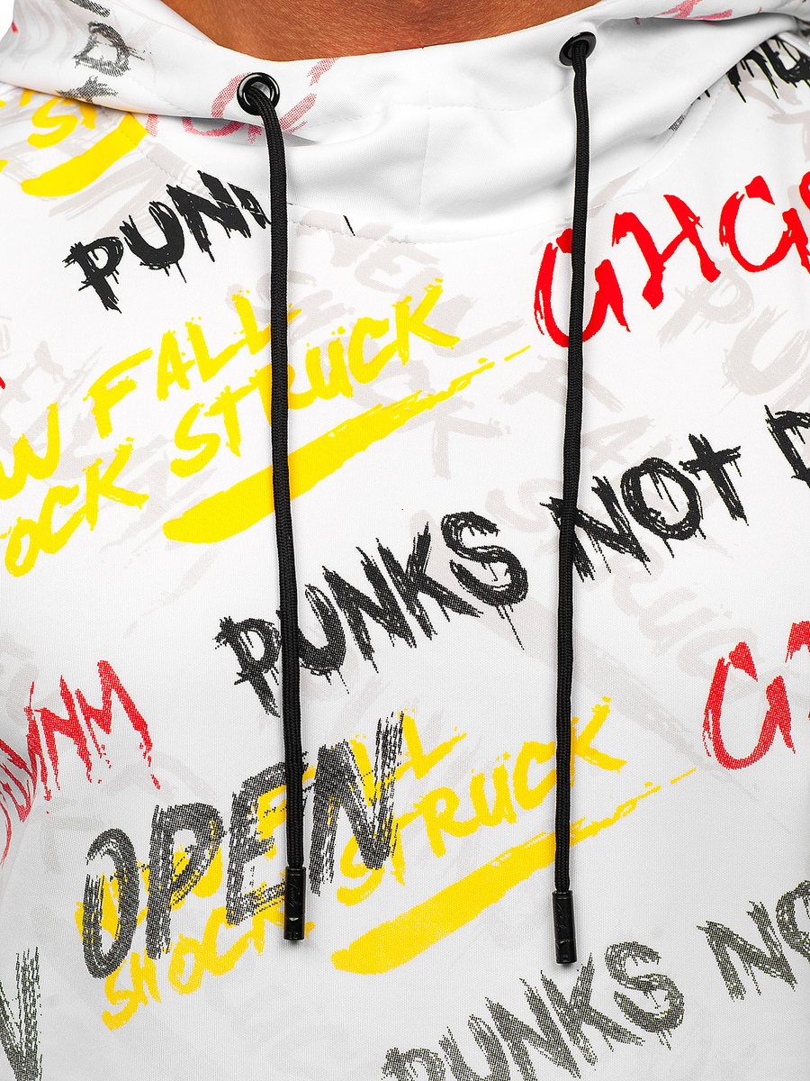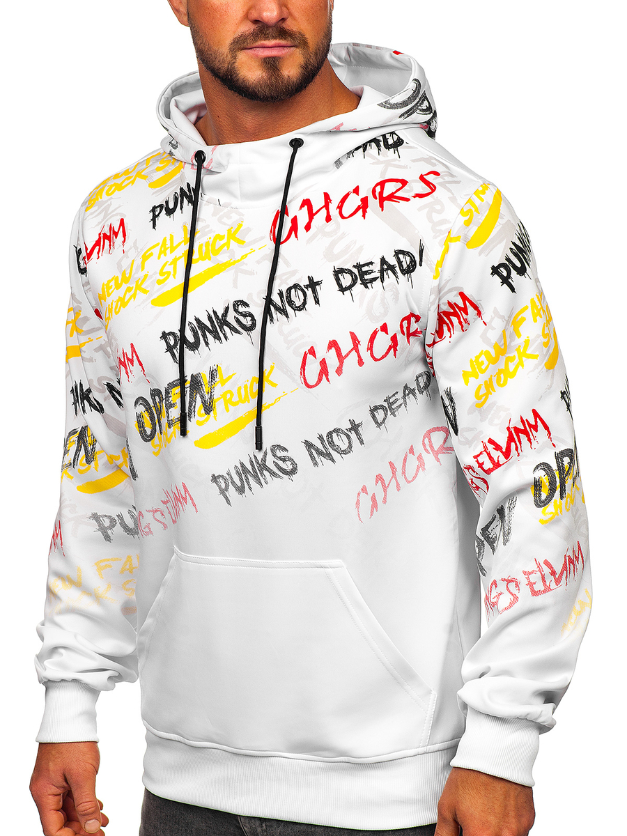Opiniones de usuarios de Sudadera tipo canguro con capucha con impresión para hombre blanco Bolf 8B997