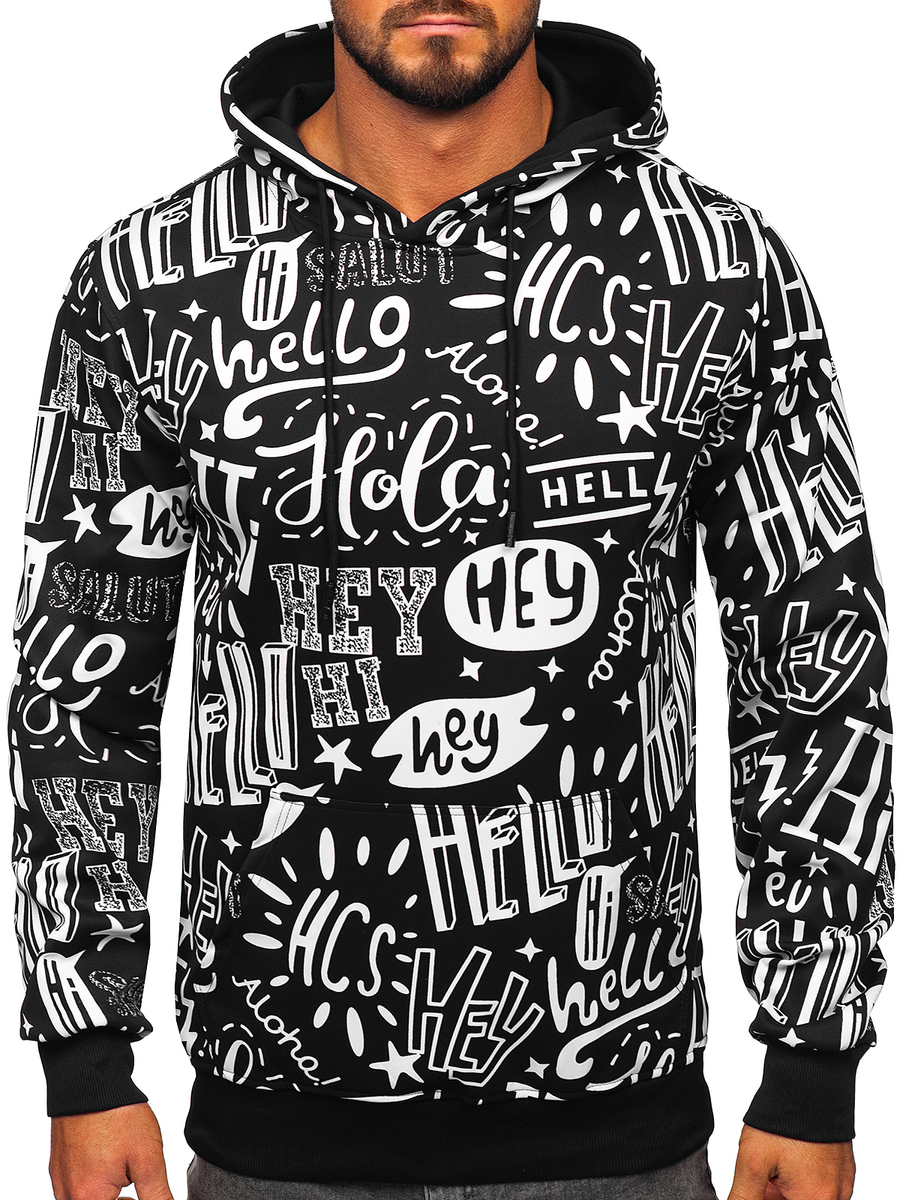 Opiniones de usuarios de Sudadera tipo canguro con capucha con impresión para hombre negro Bolf 8B1150