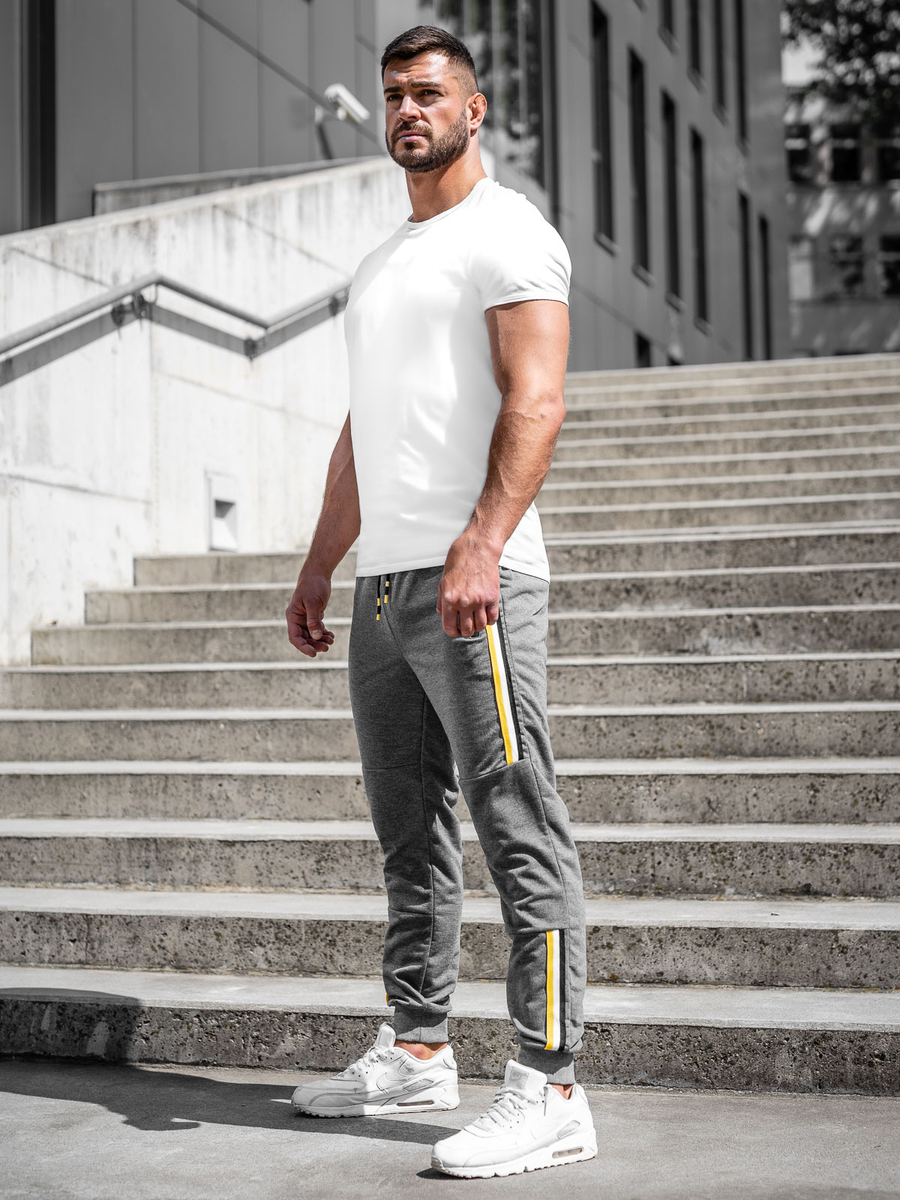 Pantalón jogger de chándal para hombre Bolf K10336A es la opción perfecta para los hombres que les gusta practicar deporte. Confeccionados con una tela agradable al tacto y transpirable. Ideales para llevar a diario o entrenar. Cuenta con dos bolsillos laterales con cierre de cremallera. Ajustable con un elástico fuerte y cordón en la cintura. Costuras decorativas y aplicaciones le añaden un carácter de moda. Vale la pena combinarlo con una camiseta de manga corta y una sudadera abierta.