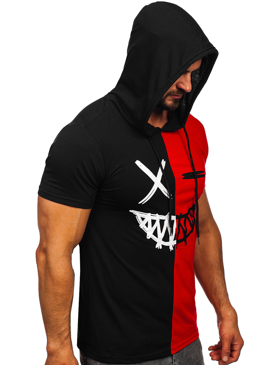 Opiniones de usuarios de Camiseta de manga corta con capucha e impresión para hombre negro y rojo Bolf 8T981