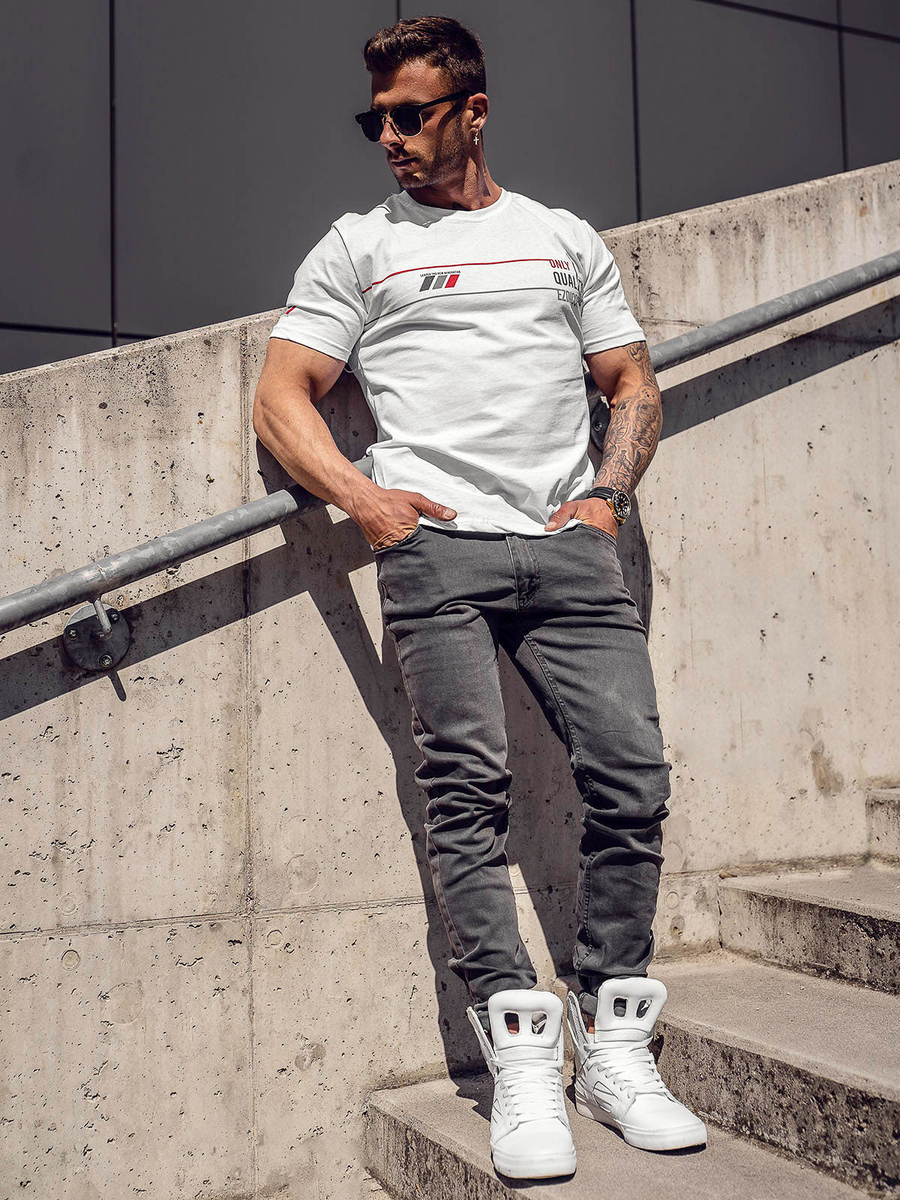 Opiniones de usuarios de Camiseta algodón de manga corta con impresión para hombre blanco Bolf 14772A