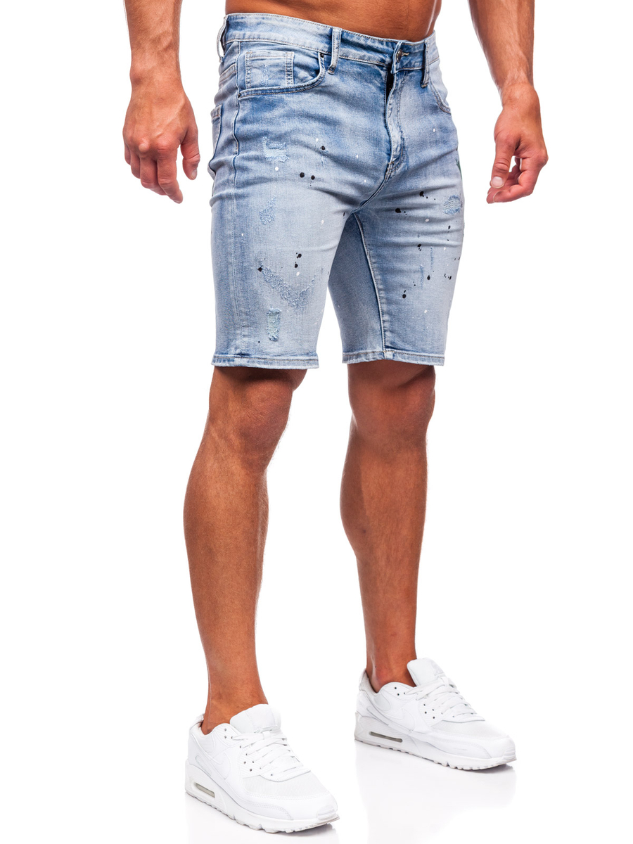 Pantalón corto vaquero para hombre Bolf MP0262BC de color azul claro, una prenda versátil que te será útil en muchas ocasiones. No importa si estás en la playa, de vacaciones o paseando por la ciudad, estos pantalones cortos te mantendrán cómodo y confortable. Confeccionado con una tela vaquera de alta calidad, este pantalón es cómodo, duradero y está siempre a la moda. Cuenta con unos bolsillos espaciosos en la parte delantera y trasera que le añaden un carácter muy funcional. Sombreados y roces en las perneras aportan un detalle de moda. Se combina genial con una camiseta de manga corta, así como con una camisa.