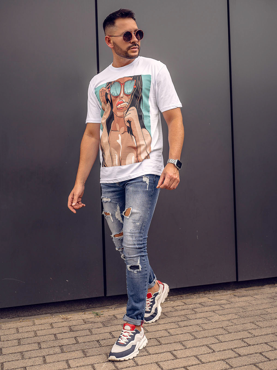 Opiniones de usuarios de Camiseta algodón de manga corta con impresión para hombre blanco Bolf 143019A