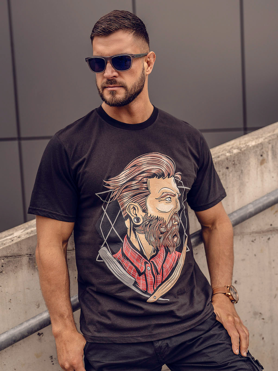 Opiniones de usuarios de Camiseta algodón de manga corta con impresión para hombre negro Bolf 143024A