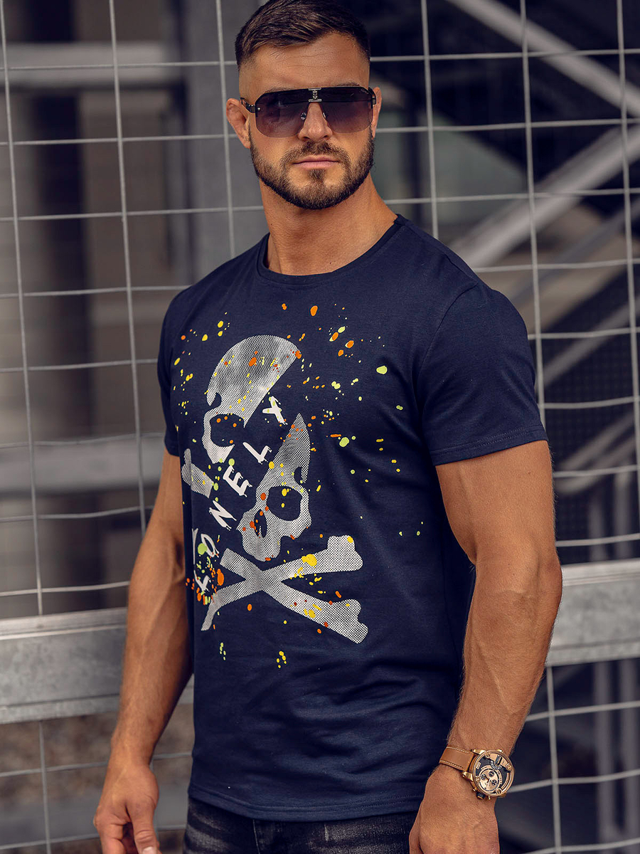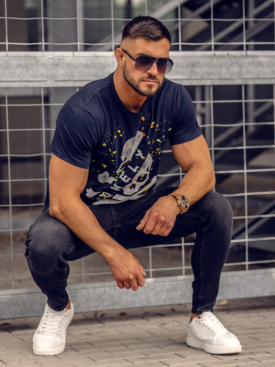 Camiseta de manga corta para hombre Bolf Y70008A de color azul oscuro con un escote redondo. Confeccionada con algodón y poliéster, es flexible y agradable al tacto. Perfecta para salidas por la ciudad, encuentros con amigos o paseos. Camiseta de color clásico que se puede combinar con prácticamente todos los estilos. Este producto presenta un estampado único en la parte delantera. Junto con unos vaqueros, joggers o pantalón de chándal , se creará una combinación perfecto. Puede llevarse bajo una sudadera o chaleco.