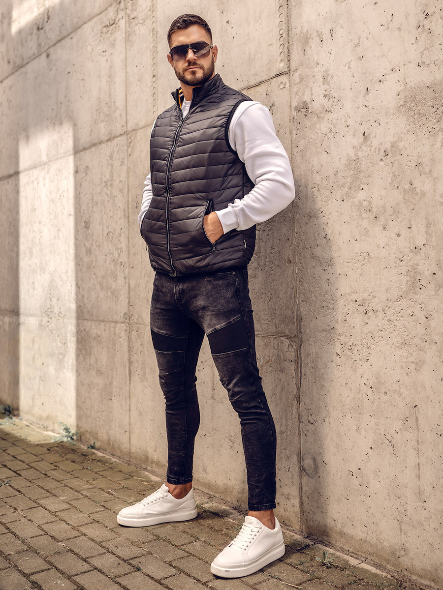 Chaleco acolchado para hombre Bolf 7103A de color negro es perfecto para los estilos de otoño y primavera. Tiene un cierre de cremallera y un cuello tipo alto. El producto cuenta con dos bolsillos exteriores con cierre de cremallera ydos internos sin cierre donde se puede guardar todo lo necesario con total seguridad. Bajo y aberturas para manos acabados con un ribete elástico. Está disponible en varios colores de moda y es de corte recto y deportivo. Te será útil para una salida a diario por la ciudad, un encuentro con los amigos o un paseo nocturno. Se puede combinar con una camiseta de manga larga y unos joggers para conseguir un estilo casual. Se combina genial también con una sudadera y unos vaqueros.