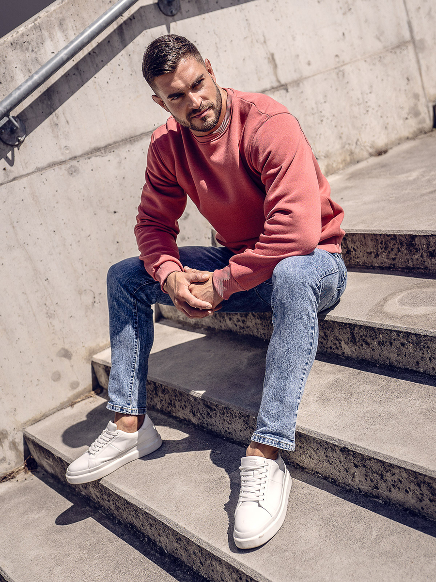 Sudadera de hombre Bolf 2001A de color salmón sin capucha es una propuesta de la categoría basic. Este modelo está disponible en más de una docena de colores más o menos intensos, con lo que es fácil de combinar con numerosos outfits. No hay duda de que las sudaderas están recomendadas para los fans de la moda minimalista. Lisas, cómodas, bien cosidas. Es un must have del armario de todo hombre de moda. El corte sencillo y clásico en más colores interesantes hacen que este modelo sea un complemento perfecto para varios outfits diarios y de estilo urbano. Puños y bajo están acabados en puntos elásticos anchos. Este producto está confeccionado de tela agradable al tacto y resistente al uso.