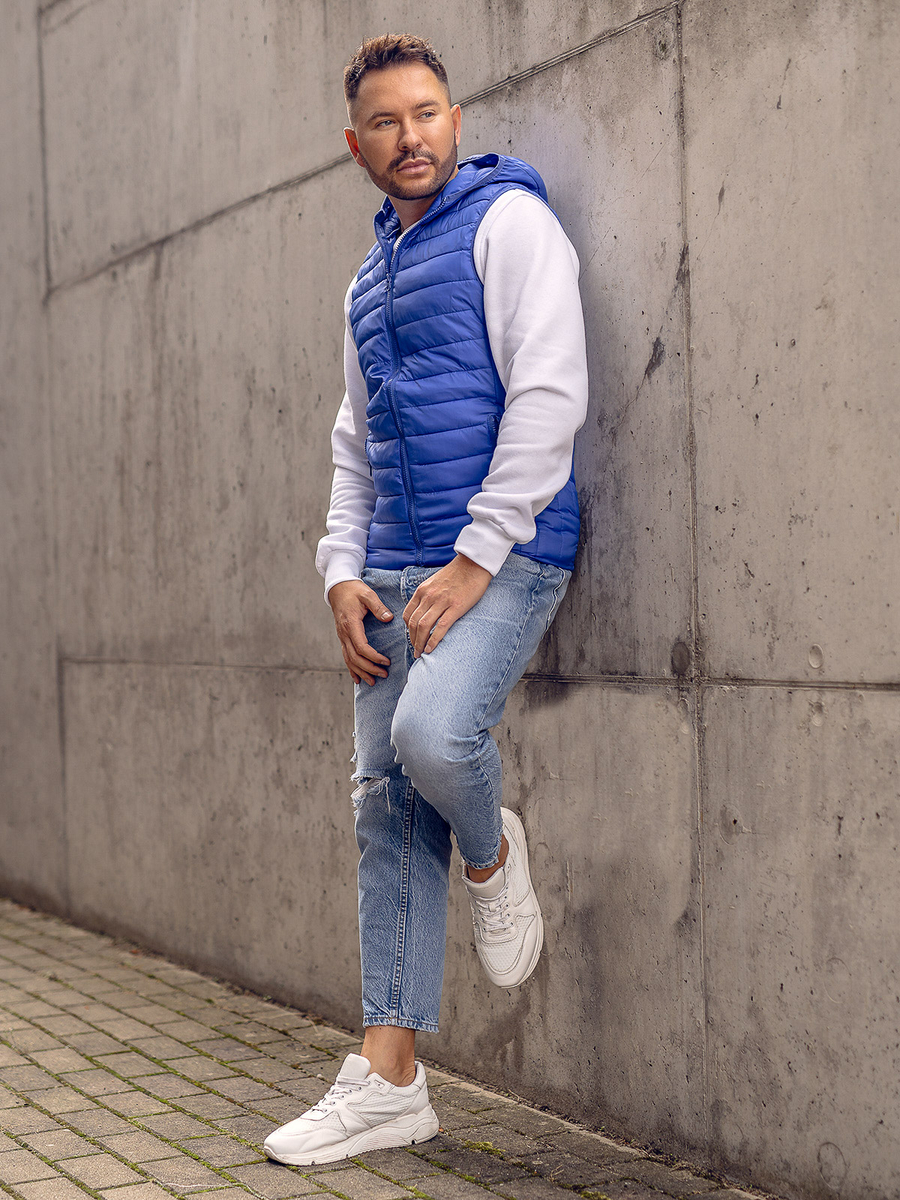 Chaleco acolchado con capucha para hombre Bolf LY36A de color cobalto, un básico en el armario de los hombres para los días más frescos. Está disponible en cinco colores, lo que le permite componer el look de sus sueños. Este chaleco acolchado cuenta con un cierre de cremallera. Un cuello alto, unido a la capucha, te protegerá del viento y del frío. Tiene dos prácticos bolsillos exteriores con cierre de cremallera en los que puede guardar con total seguridad el teléfono, la cartera y los documentos. Bajo, la capucha y aberturas para manos están acabadas con un ribete elástico que hace que el corte del chaleco se ajuste a todas las siluetas. Entre otras cosas, está dedicado a las gentes que les gusta practicar deportes al aire libre. Te será útil para jogging o pasear. Con este chaleco, una camiseta de manga larga y unos vaqueros conseguirás un look informal para una noche en la ciudad con los amigos. Se combina genial con una sudadera y unos pantalones cargos.