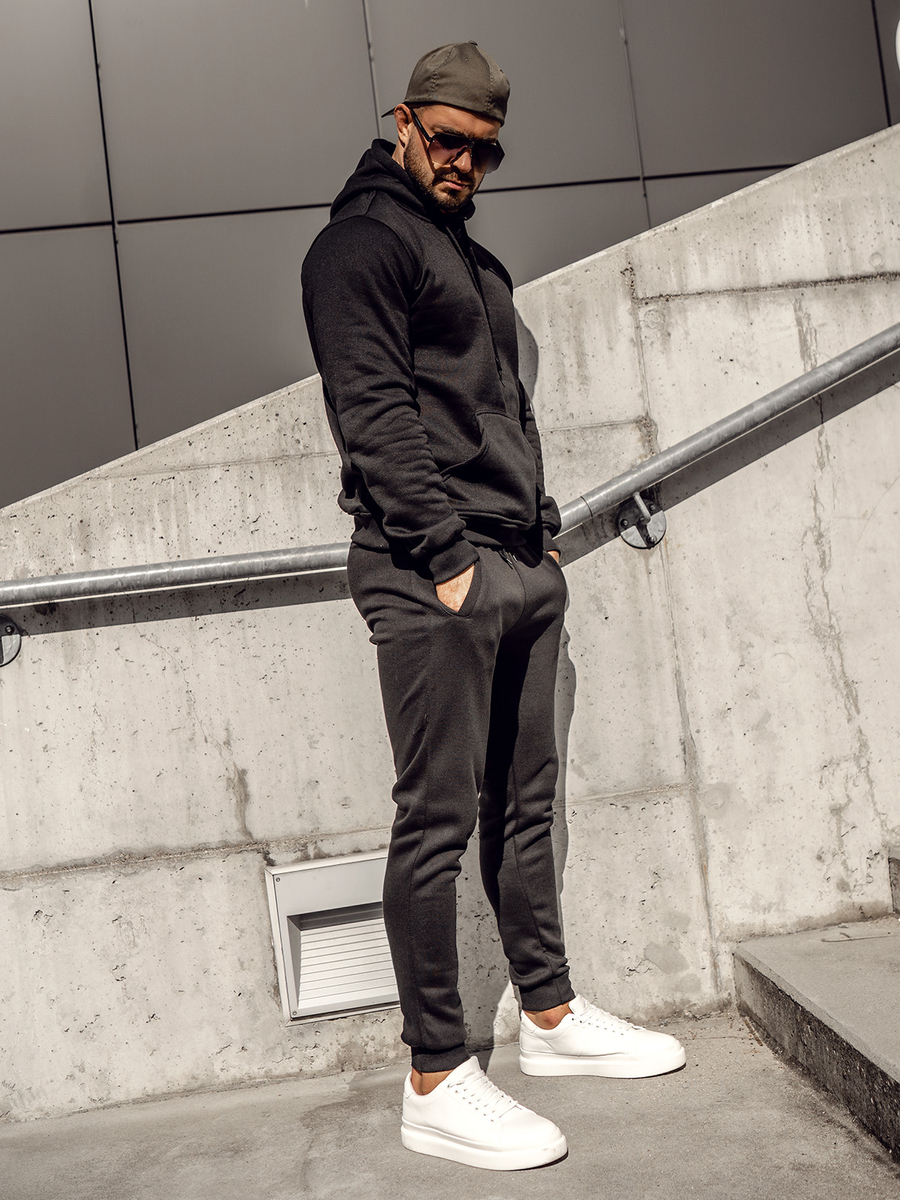 Chándal con capucha para hombre Bolf D003A de color negro es un conjunto de chándal perfecto para toda actividad deportiva. El conjunto incluye una sudadera con capucha y un pantalón de chándal. El pantalón se ajusta con un punto elástico fuerte y un cordón en la cintura, tiene dos bolsillos laterales. Corte sencillo y ajustado le añade un look deportivo. El producto está confeccionado de una tela suave, agradable al tacto. Este set de chándal se puede convertir en una base versátil para crear looks diarios o deportivos. Tanto la sudadera como el pantalón se pueden combinar con otras prendas, por lo que hay muchas opciones para crear looks de diario. Se combina genial con una camiseta de manga corta y una chaqueta de entretiempo ligera o deportiva. Conjuntos de chándal adecuados para llevar en casa, de paseo, de compras o para practicar deporte en el gimnasio o al aire libre.