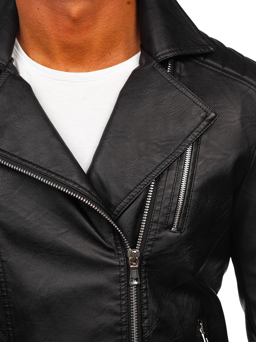 Opiniones de usuarios de Chaqueta ramonera de cuero para hombre negro Bolf 11Z8067