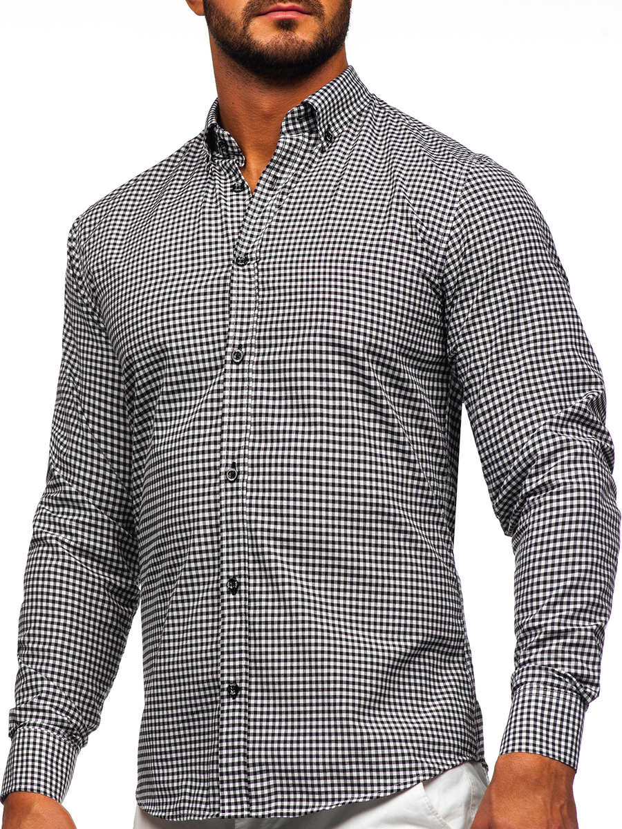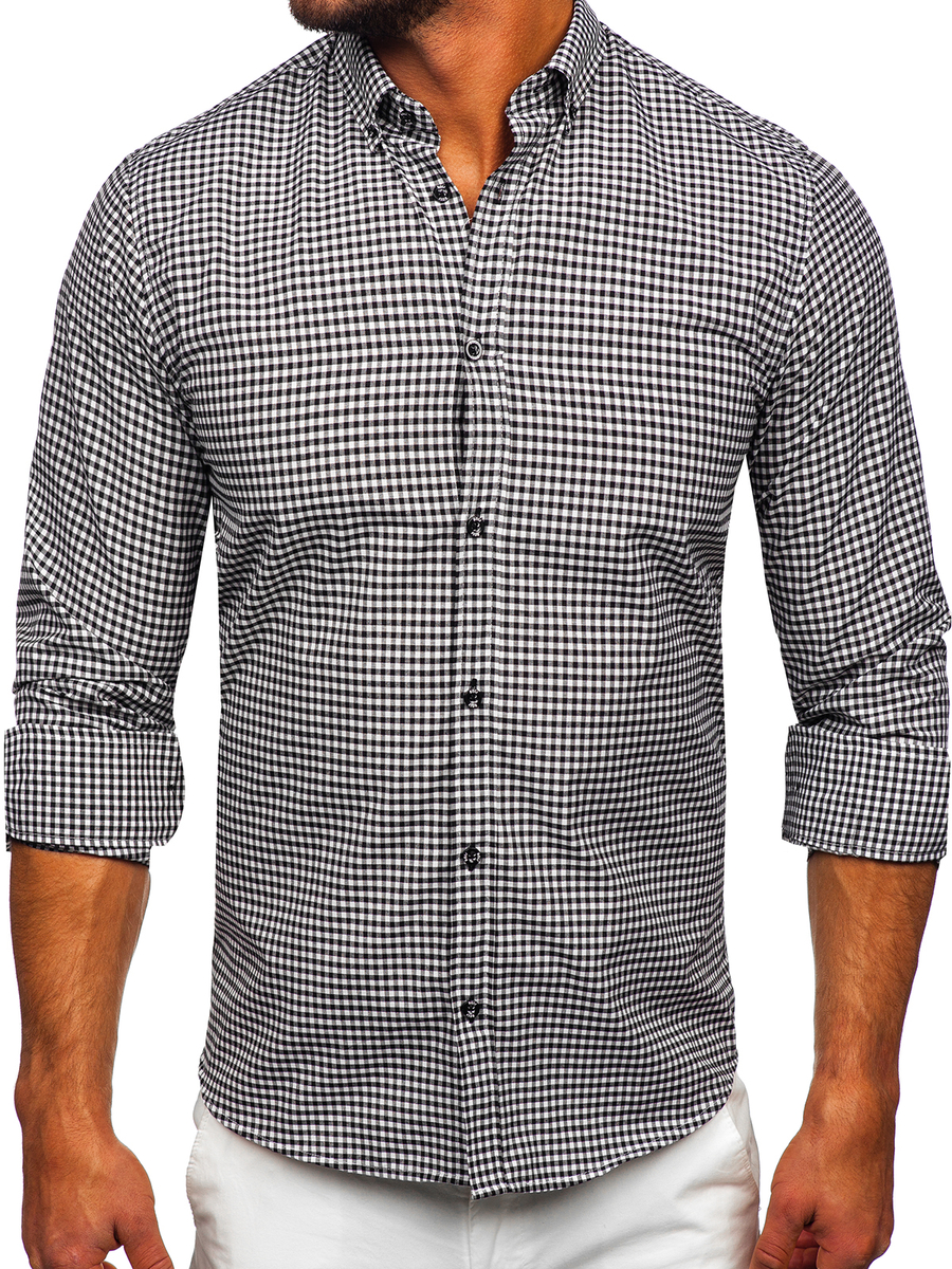 Opiniones de usuarios de Camisa a cuadros de manga larga para hombre negro Bolf 22745
