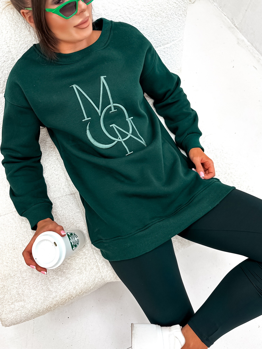 Opiniones de usuarios de Sudadera forrada sin capucha con impresión para mujer verde botella Bolf VE77