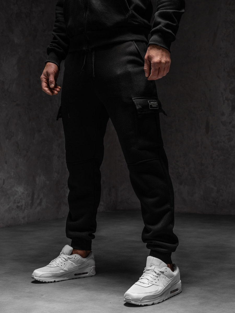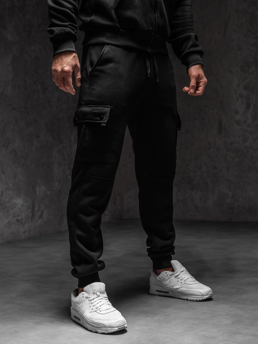 Pantalón cargo de chándal para hombre Bolf JX325 de color negro, perfecto para crear outfits urbanos. Se pueden ajustar con un elástico fuerte y cordón en la cintura, por lo que es muy cómodo y se ajusta perfectamente a todo tipo de silueta. Confeccionados en 65% de algodón y 35% de poliéster, por lo que están increíblemente cómodos y agradables al tacto. El pantalón cuenta con dos bolsillos delanteros. Perneras están acabadas con punto elástico así que se ajustan perfectamente a la silueta y protege del viento. Pantalones le harán parecer especial al salir por la ciudad o encontrarse con los amigos. Se combina genial con una camiseta de manga larga y una chaqueta de entretiempo.