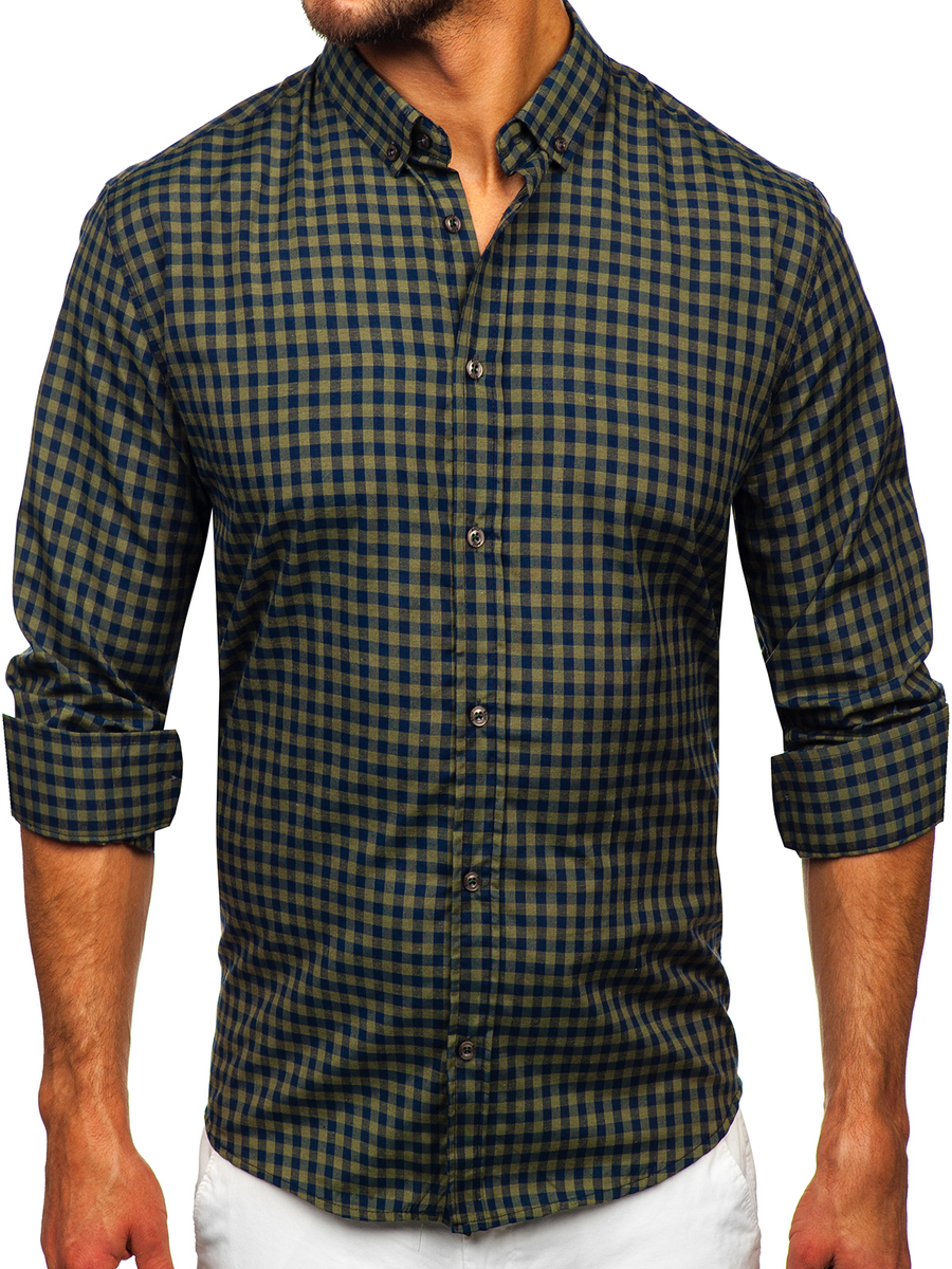 Opiniones de usuarios de Camisa a cuadros vichy de manga larga para hombre verde Bolf 22747