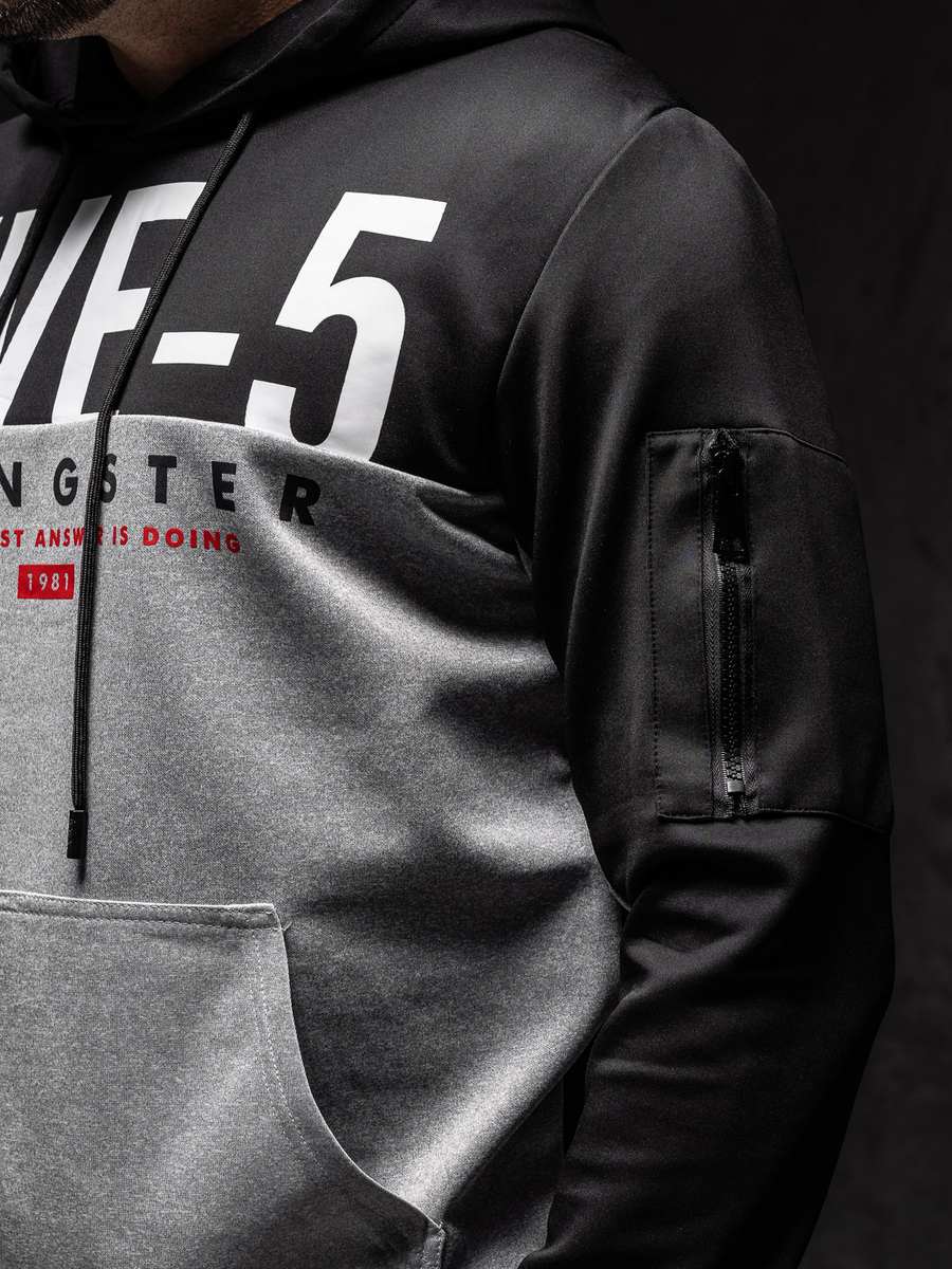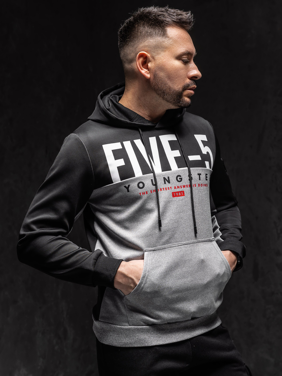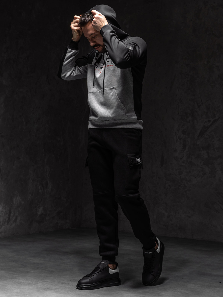 Sudadera con capucha e impresión para hombre Bolf 141031A de color gris es la mejor alternativa para los hombres que valoran un look a la moda y el confort. Este modelo cuenta con un original impresión decorativo en la parte delantera, que le añade un carácter original. Está disponible en tres colores. Puños y bajo de la sudadera están acabados en punto elástico. Tiene un bolsillo tipo caguro práctico yuna capucha ajustable de dos capas. Es ideal para los partidarios de un estilo de vida activo. Puede ponérsela para entrenamientos exigentes, jogging y otras actividades al aire libre. Por su tela, la sudadera te sienta genial. Aunque si valoras el confort créate tu look deportivo con un chándal y un chaleco. La versatilidad del producto también le permite crear un look casual para salir por la ciudad con los amigos o viajar durante el fin de semana. Se combina genial con nuestros vaqueros, una camiseta de manga corta y una chaqueta de cuero.