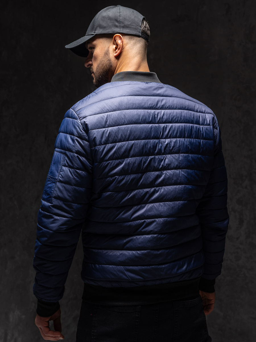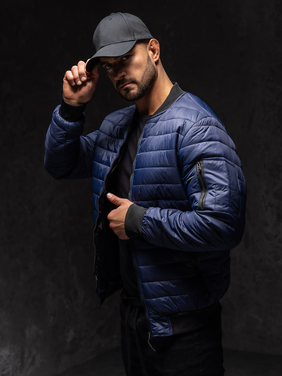 Chaqueta bomber de entretiempo para hombre Bolf MY-02A1 de color azul oscuro, acolchada con rayas horizontales. Cuenta con un cierre de cremallera. Esta chaqueta bomber es adecuada para outfits deportivos e informales, pero también se puede llevar con prendas de estilo urbano. Cuenta con un cuello tipo alto práctico. Tiene dos bolsillos externos con cierre de cremallera y un bolsillo con cierre en la manga izquierda. Los puños, bajo y cuello están acabados en punto elástico de color negro en contraste. Por su sencillez y confección, esta chaqueta es atemporal y se puede llevar durante varias temporadas. Se adapta perfectamente a las tendencias de moda actuales y está confeccionada con una tela agradable al tacto, ligera y cálida. Una chaqueta de estilo deportivo para los días más frescos, a principios de primavera y otoño. Está disponible en una amplia gama de colores, por lo que será muy fácil de combinar con otras prendas.