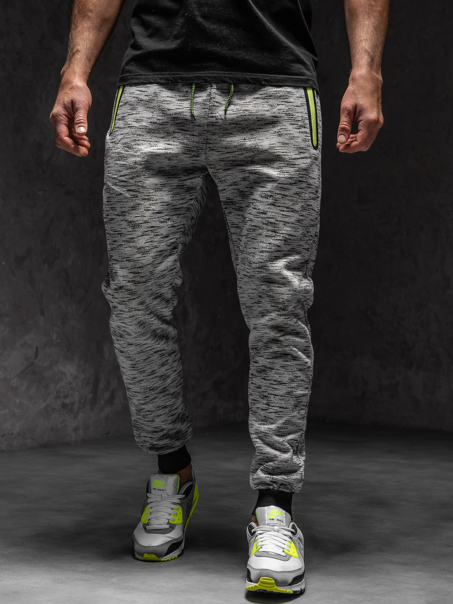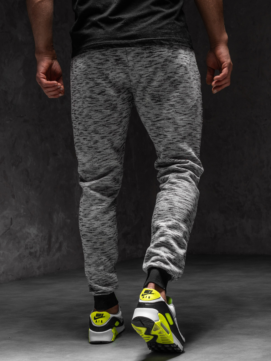 Pantalón Bolf para hombre, deportivo, estampado de un diseño irregular, color gris. Sienta genial, tiene 2 bolsillos con cierre de cremallera, elástico práctico en la cintura e inserciones en contraste junto a los bolsillos. Puedes llevar este pantalón gris para hombre con varios estilos. Combínalo con camiseta de manga corta, camiseta de manga larga o con sudadera.