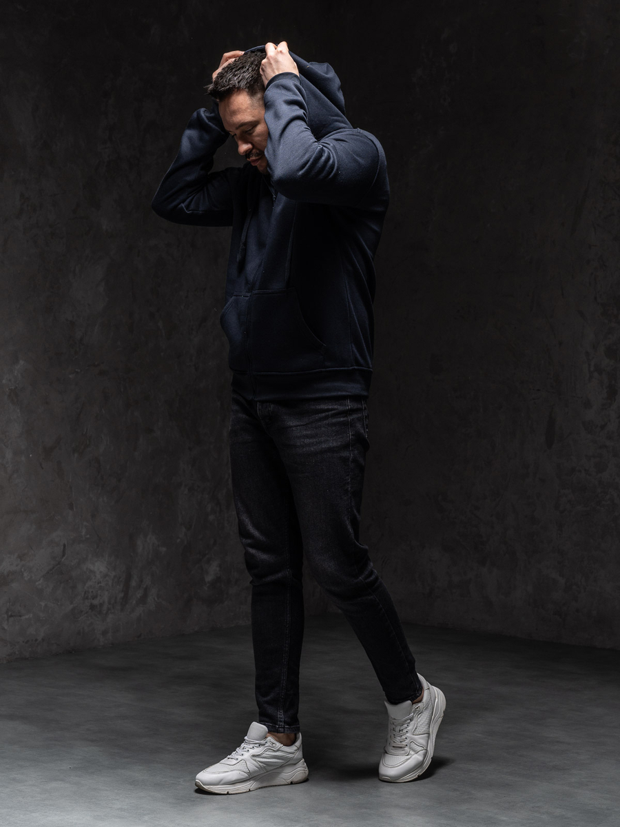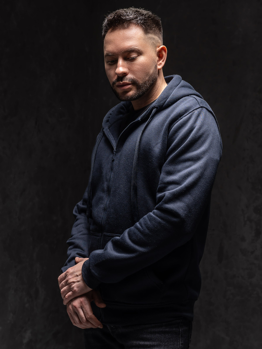 Sudadera Bolf 2008A1 azul tinta para hombre, con capucha y cierre de cremallera. Esta sudadera clásica está confeccionada en un tejido de punto deportivo suave y agradable al tacto. El producto está disponible en varios colores llamativos. Tiene una capucha ajustable de color uniforme y dos bolsillos laterales sin cierre. El bajo y los puños acabados en punto elástico fuerte. Esta sudadera se recomienda especialmente para los fans que les gusta el minimalismo y el confort en la moda. Es muy cómoda y bien cosida. Es un must have del armario de todo hombre de moda. Con su corte sencillo y clásico en unos colores llamativos, este modelo de sudadera es el complemento perfecto para muchos outfits de diario, urbanos y deportivos. Sudadera lisa y abierta para hombre es una propuesta que vale la pena tener en su armario no sólo en una, sino en varias variedades de color. Desde el clásico negro, hasta el azul oscuro y el rojo, o los más sofisticados, como el amarillo, el naranja o el rosa. Esta sudadera es adecuada para muchas ocasiones y en toda la temporada.