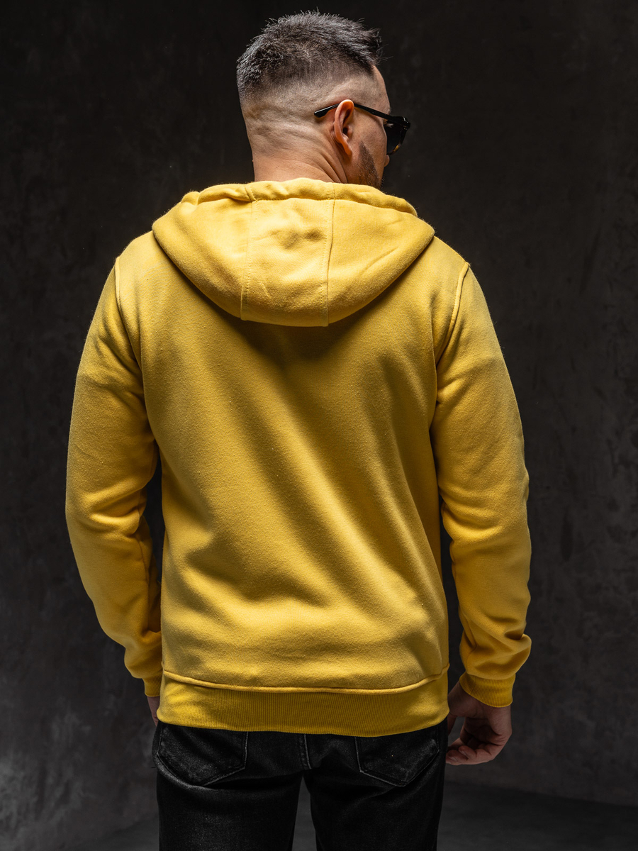 Sudadera Bolf 2008A1 amarilla para hombre, con capucha y cierre de cremallera. Esta sudadera clásica está confeccionada en un tejido de punto deportivo suave y agradable al tacto. El producto está disponible en varios colores llamativos. Tiene una capucha ajustable de color uniforme y dos bolsillos laterales sin cierre. El bajo y los puños acabados en punto elástico fuerte. Esta sudadera se recomienda especialmente para los fans que les gusta el minimalismo y el confort en la moda. Es muy cómoda y bien cosida. Es un must have del armario de todo hombre de moda. Con su corte sencillo y clásico en unos colores llamativos, este modelo de sudadera es el complemento perfecto para muchos outfits de diario, urbanos y deportivos. Sudadera lisa y abierta para hombre es una propuesta que vale la pena tener en su armario no sólo en una, sino en varias variedades de color. Desde el clásico negro, hasta el azul oscuro y el rojo, o los más sofisticados, como el amarillo, el naranja o el rosa. Esta sudadera es adecuada para muchas ocasiones y en toda la temporada.