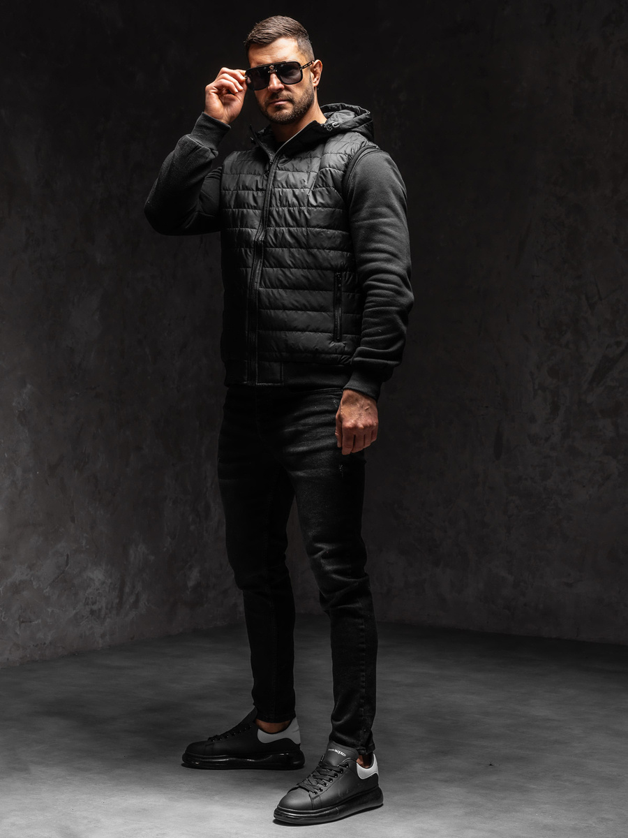 Chaleco acolchado con capucha para hombre Bolf MY88A1 de color negro, perfecto para crear outfits de otoño e invierno. Cuenta con un cierre de cremallera y un cuello elevado. Su capucha no extraíble garantiza una excelente protección contra el viento y la lluvia. Incluye dos bolsillos exteriores con cierre de cremallera. Aberturas para manos están acabados con un ribete elástico y el bajo está acabado con punto elástico. Este producto encontrará su lugar en el armario de todo hombre que valore el estilo deportivo. Puede llevarse para pasear, practicar deporte o durante una escapada de fin de semana. Confeccionado con un 100% de poliéster. Se combina genial con una camiseta de manga larga, unos vaqueros o unos pantalones de chándal.