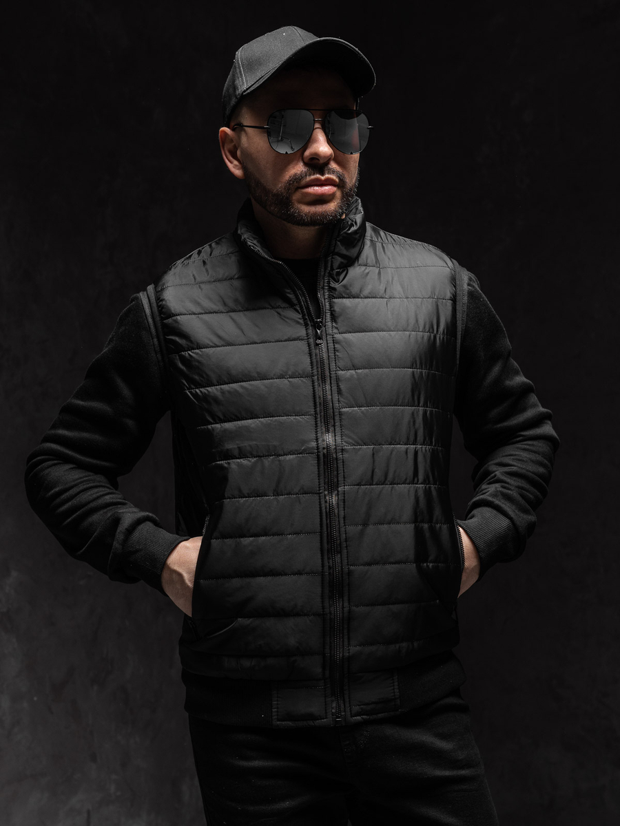 Chaleco acolchado para hombre Bolf MY77A1, de color negro, un básico que no puede faltar en el armario de todo hombre durante los días más frescos. Está disponible en siete colores, lo que le permite elegir el más adecuado para usted. Chaleco acolchado con cierre de cremallera. El cuello elevado protege perfectamente del viento y del frío. Tiene dos prácticos bolsillos exteriores con cierre de cremallera en los que puede guardar con total seguridad el teléfono, la cartera y los documentos. El bajo del chaleco está acabado en un punto elástico ancho de color negro, así se ajusta perfectamente al silueta. Entre otras cosas, está dedicado a las gentes que les gusta practicar deportes al aire libre - te sera útil para jogging o pasear. Con este chaleco, una camiseta de manga larga y unos vaqueros conseguirás un look informal para una noche en la ciudad con los amigos. Se combina genial con una sudadera abierta, unos joggers o unos pantalones cargos. Recuerda elegir una camiseta de manga corta llamativa para acentuar el carácter de tu estilo.