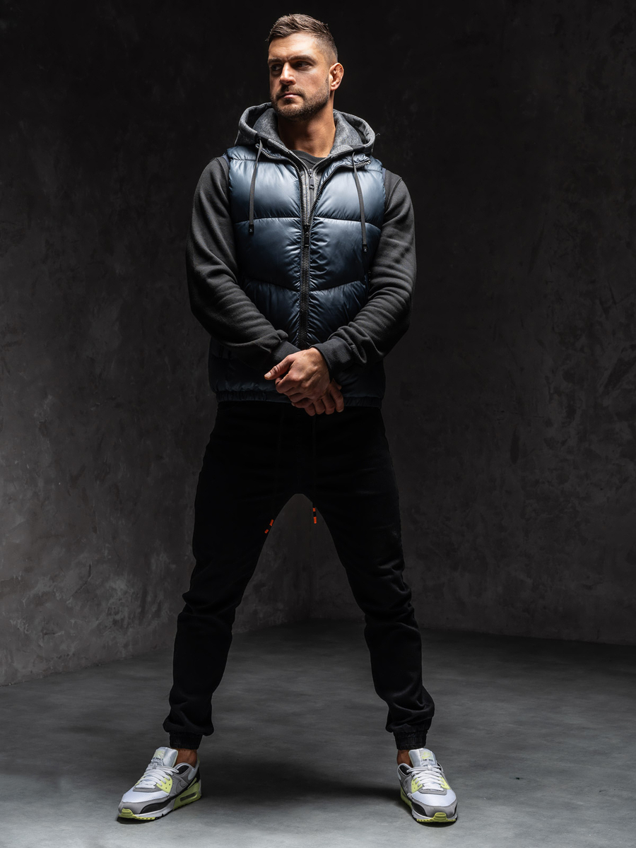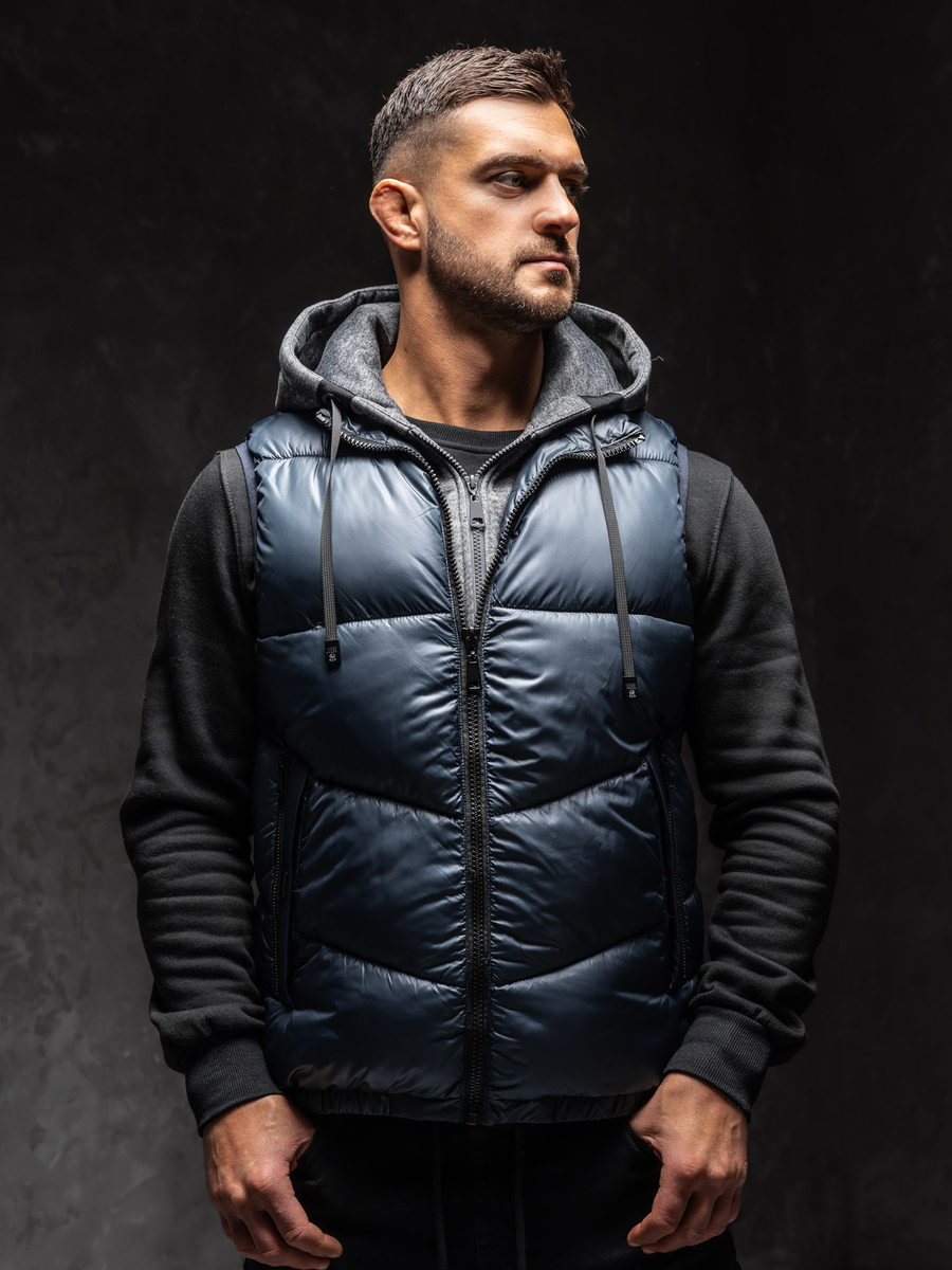 El chaleco con capucha para hombre azul marino Bolf 2908A1 será perfecto para crear cualquier estilismo, tanto deportivo como urbano. Este chaleco acolchado de corte clásico será una alternativa perfecta a una chaqueta en las temporadas de otoño y primavera, ya que brindará protección contra el frío y el viento. Este modelo tiene un forro desmontable con capucha, para que puedas adaptar su apariencia a tu estilo. Se cierra con cremallera. La parte inferior tiene un puño y el borde de las mangas tiene un ribete elástico: ¡todo esto te mantendrá abrigado en los días fríos! Dos bolsillos exteriores con cierre de cremallera le añaden un carácter práctico. Confeccionada con un 100% de nylon. Este chaleco puede ser la base de muchos outfits de moda y puede sustituir con éxito una chaqueta de entretiempo. Se combina genial con pantalones de chándal y así crear un outfit deportivo y holgado. ¡Puedes usarlo con lo que quieras: manga larga, sudadera o camiseta!