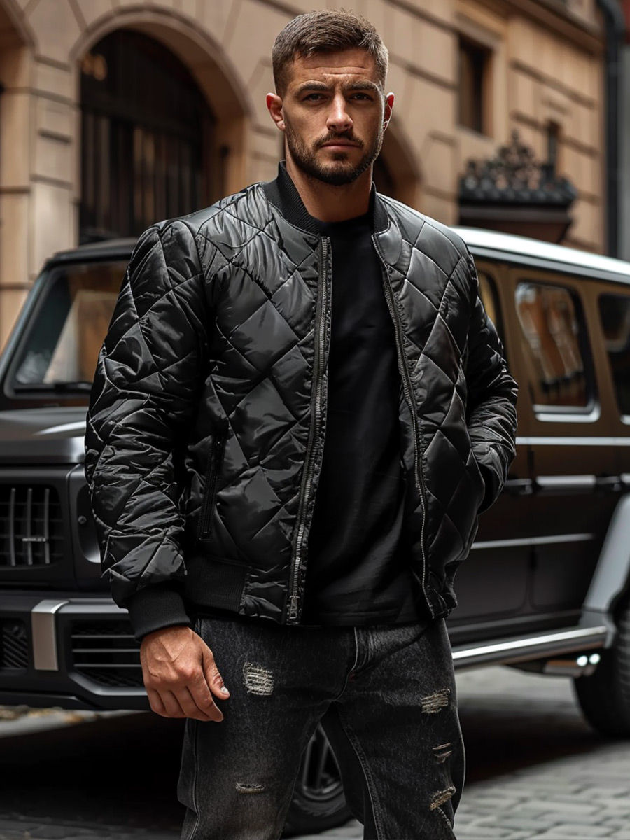 - Chaqueta tipo bomber jacket acolchada de rombos