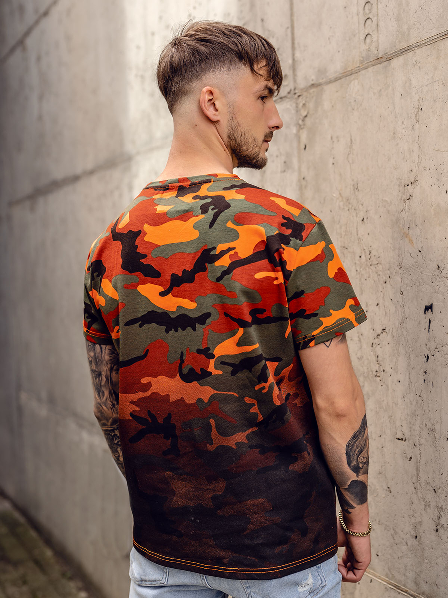 Camiseta camuflaje de manga corta Bolf S808A1 con impresión para hombre de color verde y naranja está confeccionado para los hombres que valoran tanto la audacia como el carácter original de su estilo. Camiseta de manga corta con diseño camuflaje de moda y escote redondo práctico. Camiseta diseñada con motivos ombré. Confeccionada con un 65% de algodón y un 35% de poliéster, la camiseta es elástica y se ajusta perfectamente al silueta. Puños y bajo con un hilo amarillo que se combina fácilmente con los colores de la camiseta.