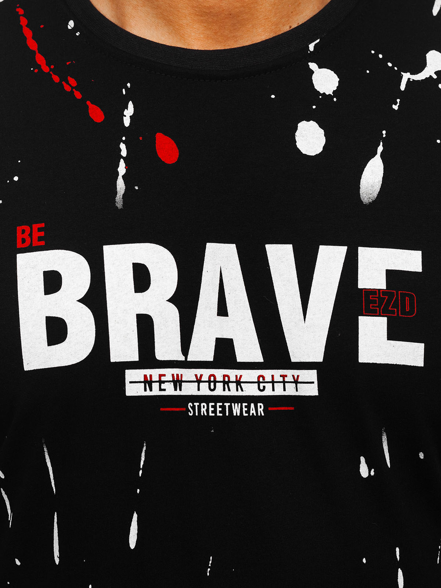 Opiniones de usuarios de Camiseta algodón de manga corta con impresión para hombre negro y rojo Bolf 14727