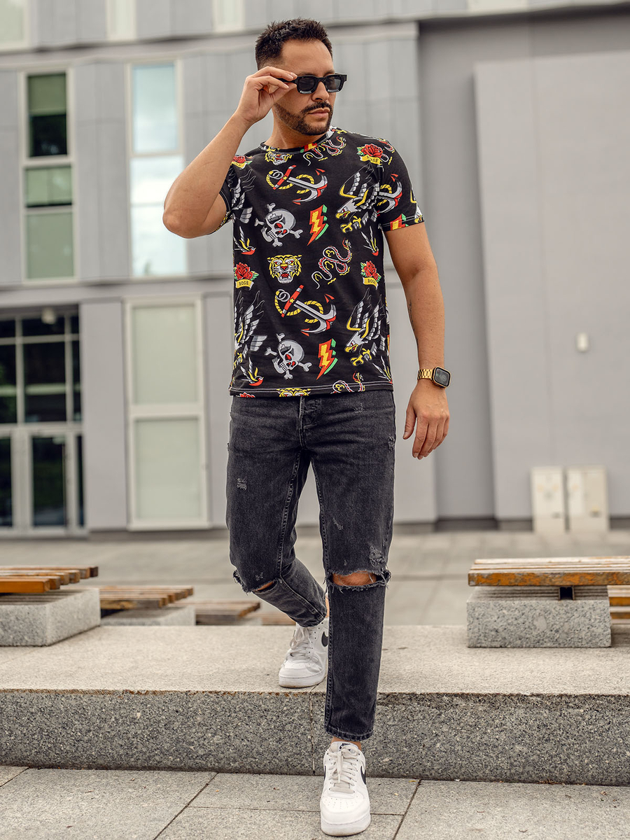 Camiseta de manga corta con impresión para hombre Bolf 14962 es una opción estupenda para los hombres que valoran la moda y el look atractivo. Confeccionada con un algodón de máxima calidad, es agradable al tacto y transpirable. Realza la silueta perfectamente, al tiempo que resulta cómodo y no estorba los movimientos. Su impresiópn de moda atrae todas las miradas y animará muchos looks. Esta camiseta puede combinarse fácilmente con estilos informales y deportivos. Vale la pena combinarla con una chaqueta bomber y unos pantalones deportivos.