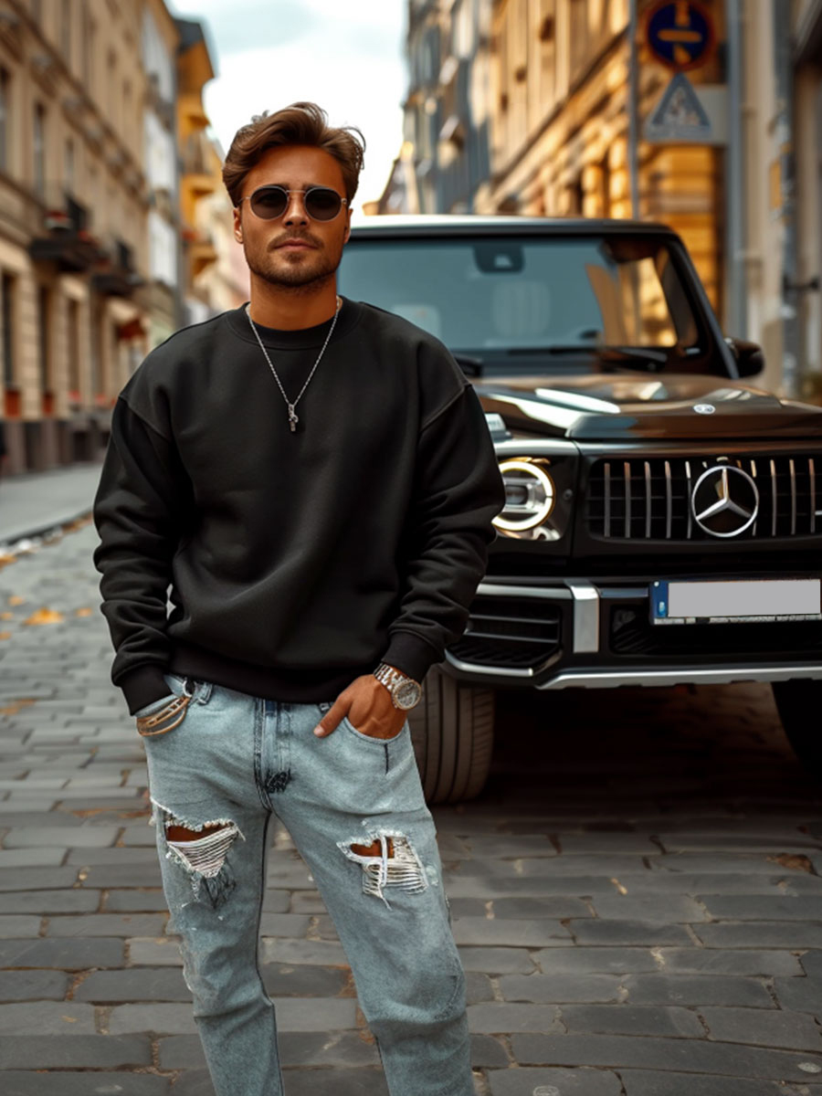 Sudadera lisa para hombre es una propuesta que vale la pena tener en su armario no sólo en una, sino en varias variedades de color. Desde el negro clásico, hasta los tonos azules y verdes, y los más atrevidos, como naranja, violeta o rosa. Estas sudaderas se pueden llevar durante todo el año y en todas las circunstancias. ¿Salida espontánea con amigos? ¿Compras? ¿Encuentro después de trabajo? Se puede salir a una cita incluso con esta sudadera y sentirse cómodo y de moda. El producto es también perfecto para los outfits típicamente deportivos, y se puede combinar esta sudadera con pantalón de chándal o pantalón corto de chándal para un look realmente deportivo adecuado para sus ejercicios. Esta sudadera es perfecta para llevarla a diario junto con vaqueros o joggers y una chaqueta bomber de moda, o una chaqueta de cuero clásica.